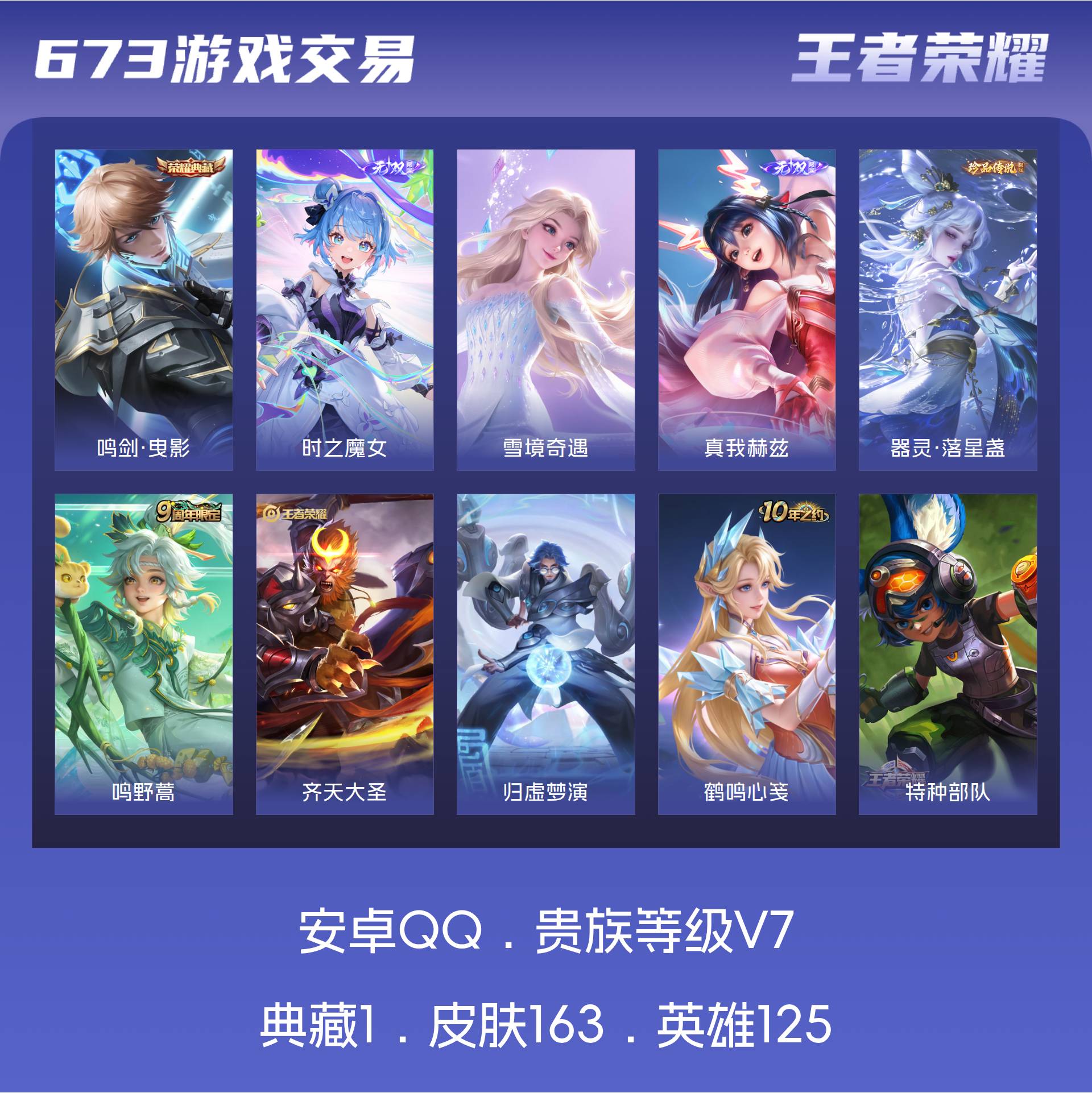 安卓QQ/尊贵铂金/163皮肤/125英雄/1典藏/0珍品无双/3无双/1珍品传说/1传说/34史诗
