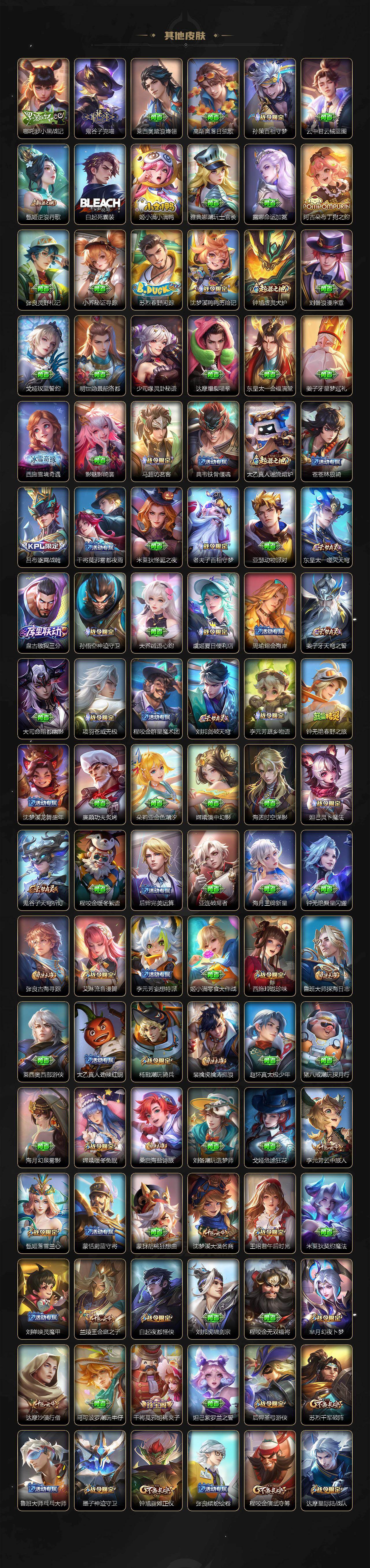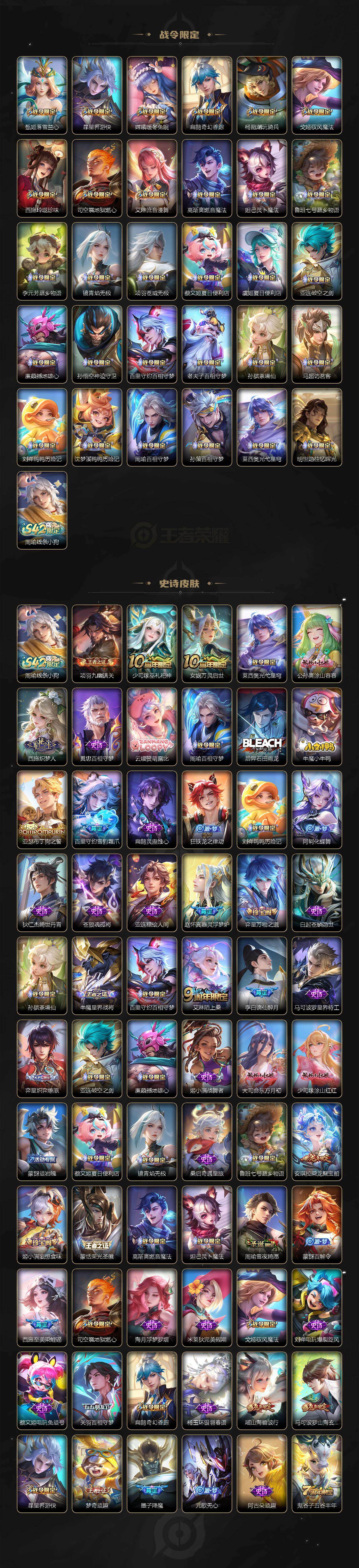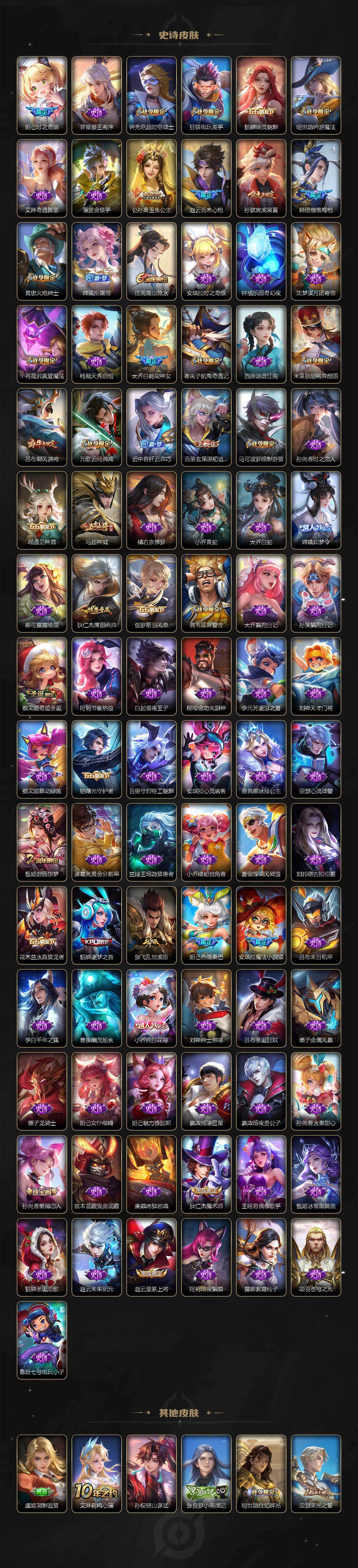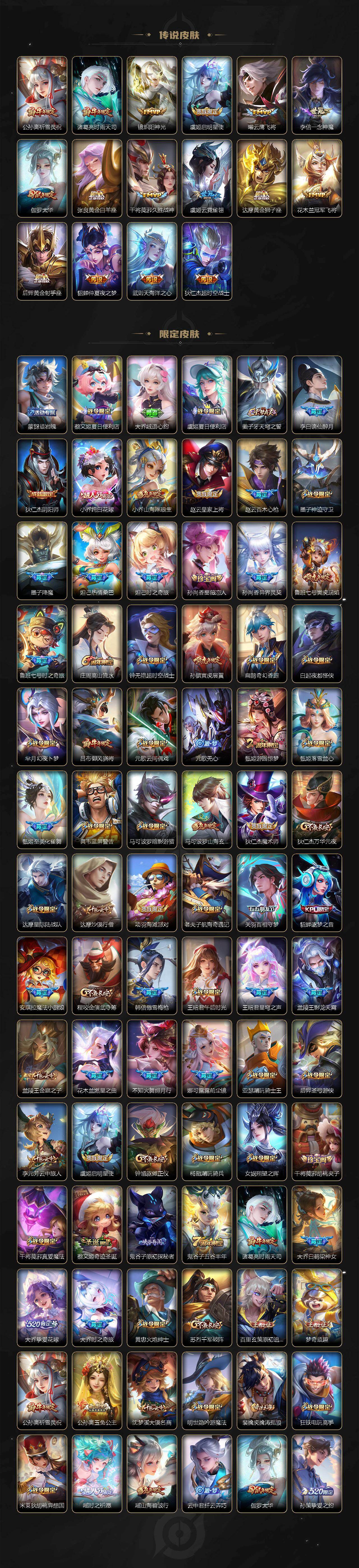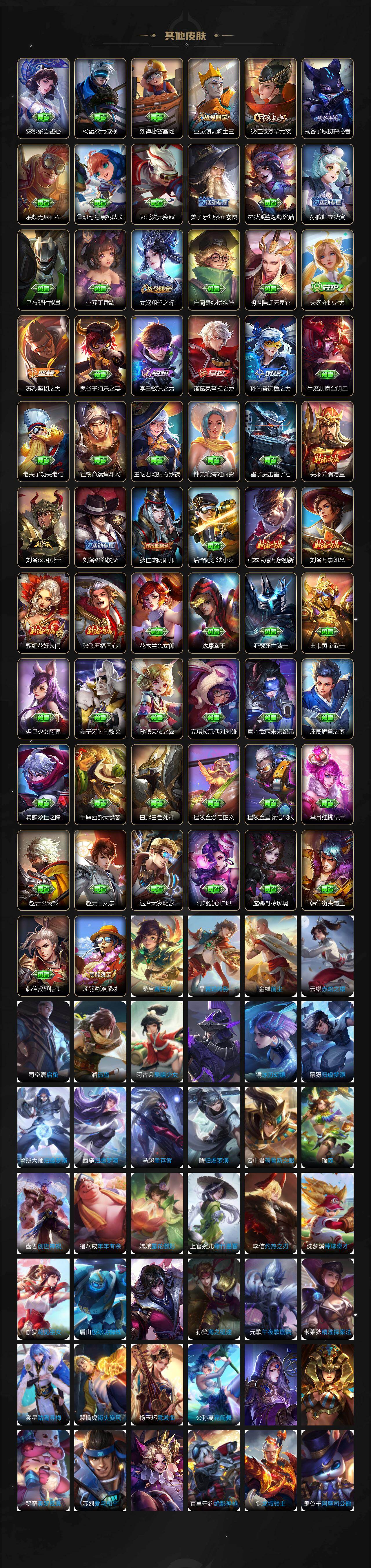 【英雄全皮】:刘禅全皮,孙权全皮,娜可露露全皮,苍全皮,瑶全皮,嫦娥全皮,西施全皮,司空震全皮,戈娅全皮,影全皮,少司缘全皮