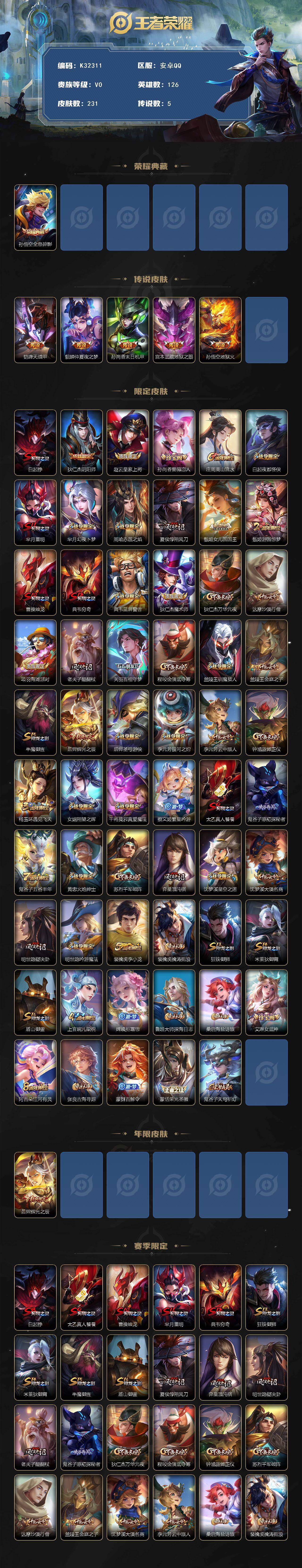安卓Q-V0-永恒钻石V段位-126英雄-231皮肤-1典藏皮肤-5传说-57史诗