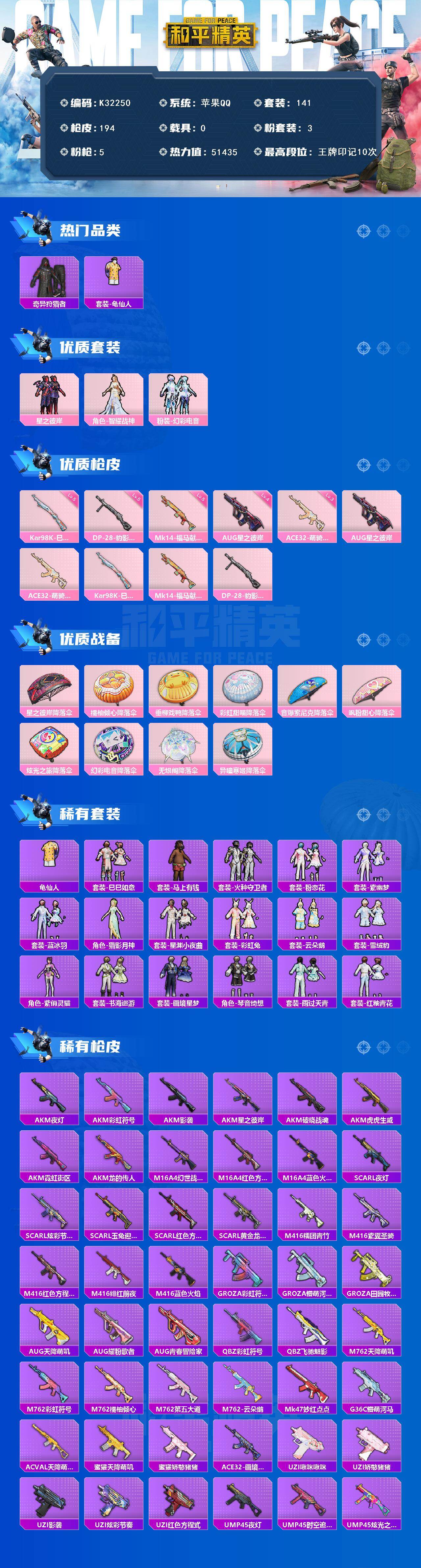 苹果 手Q-3粉装-5特效枪-0载具-0粉色飞行器-51435热力值-10王牌印记-141套装-194枪皮