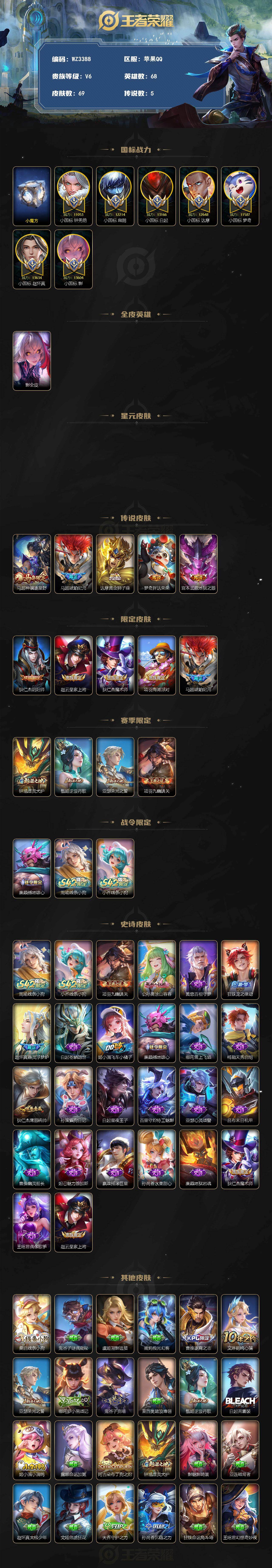 【秒换绑】苹果Q-V6-【1.3w小国标赵怀真,影,白起,1.2w小国标达摩,扁鹊,1.1w小国标梦奇,钟无艳】最强王者段位-68英雄-69皮肤-5传说-25史诗