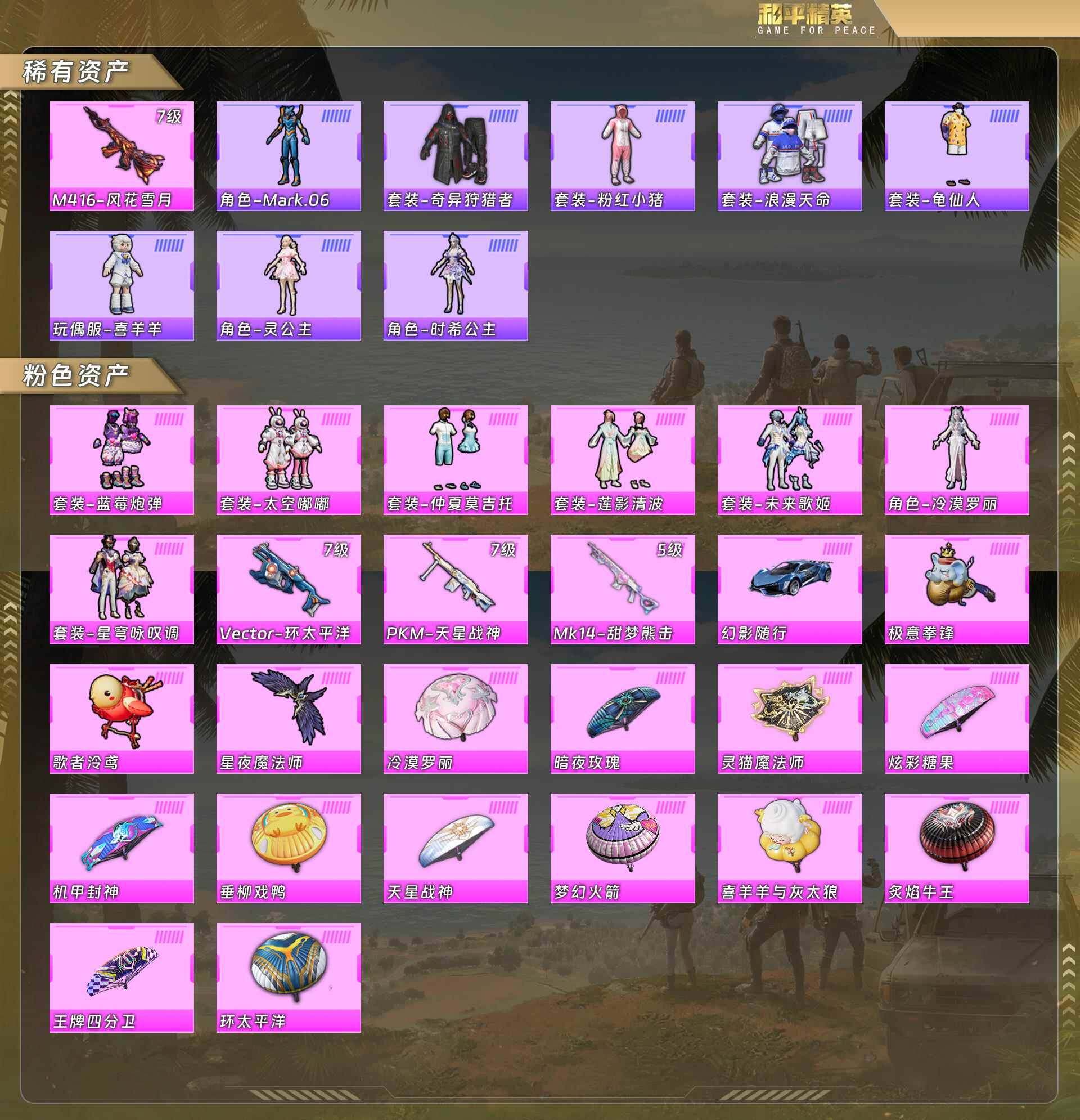 身法号-M4风花雪月7级/Mark06/奇异狩猎者/粉红小猪/浪漫天命/喜羊羊/灵公主/时希公主/蓝莓炮弹/太空嘟嘟/仲夏莫吉托/莲影清波/未来歌姬/冷漠罗丽/星穹咏叹调/维克托环太平洋7级/PKM天星战神7级/Mk14甜梦熊击5级/幻影随行 没战神框 HP6313-3粉色飞行器-61747热力值-13王牌印记-135套装-179枪皮