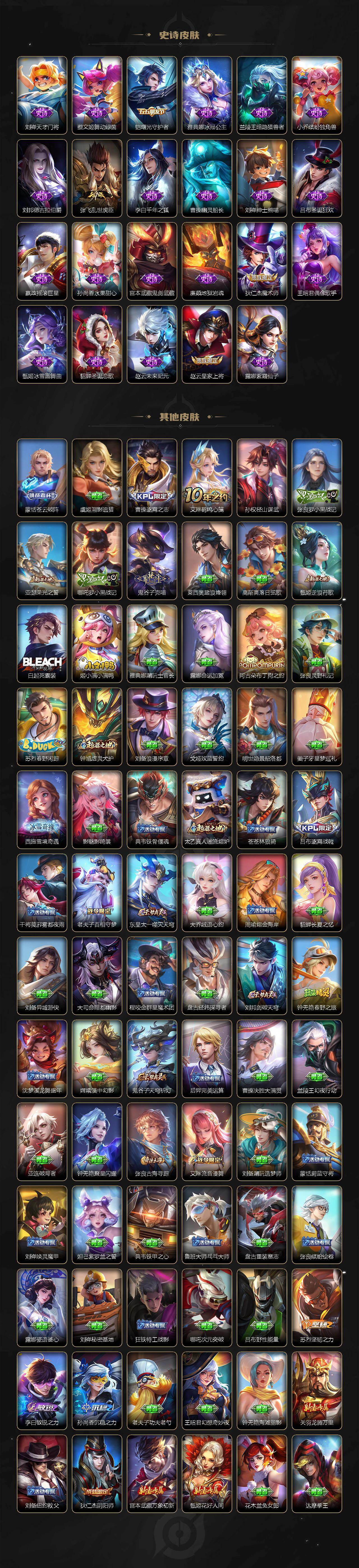 安卓Q-V6-至尊星耀II段位-126英雄-184皮肤-1典藏皮肤-10传说-52史诗