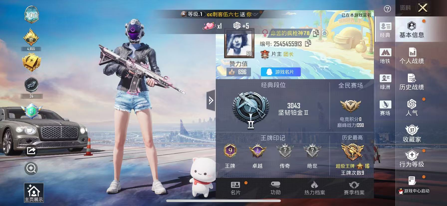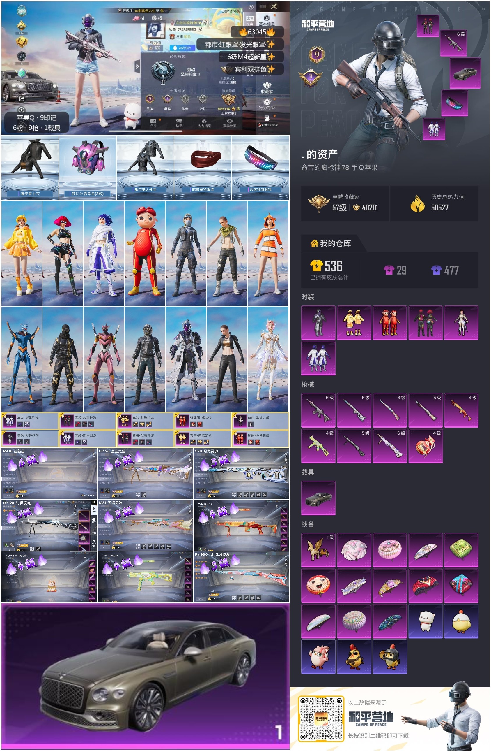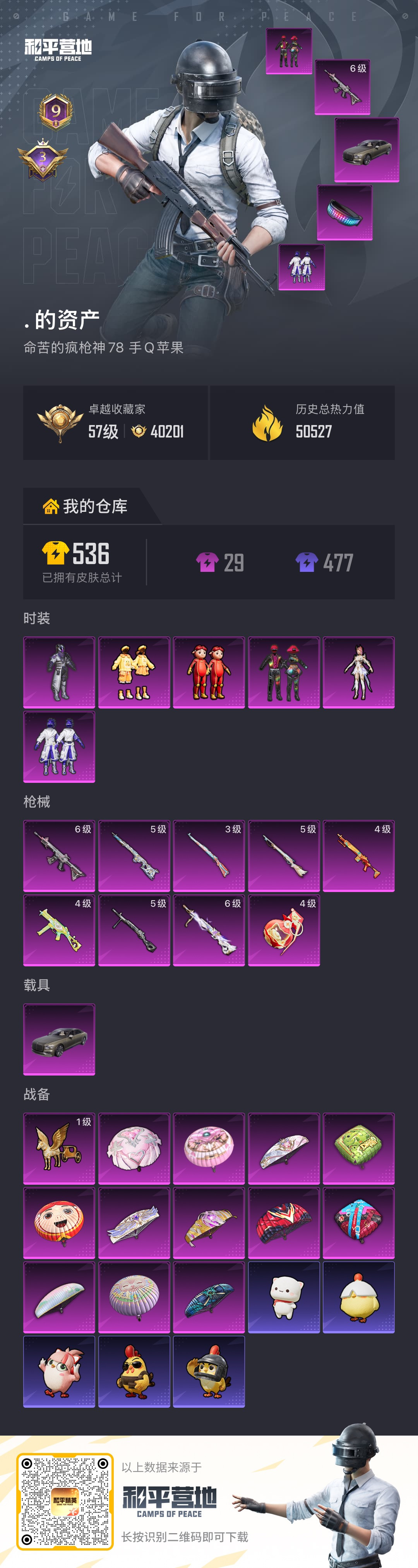 hs63045 苹果手Q-9王牌印记-6粉装-9特效枪-1载具-50557热力值-109套装-152