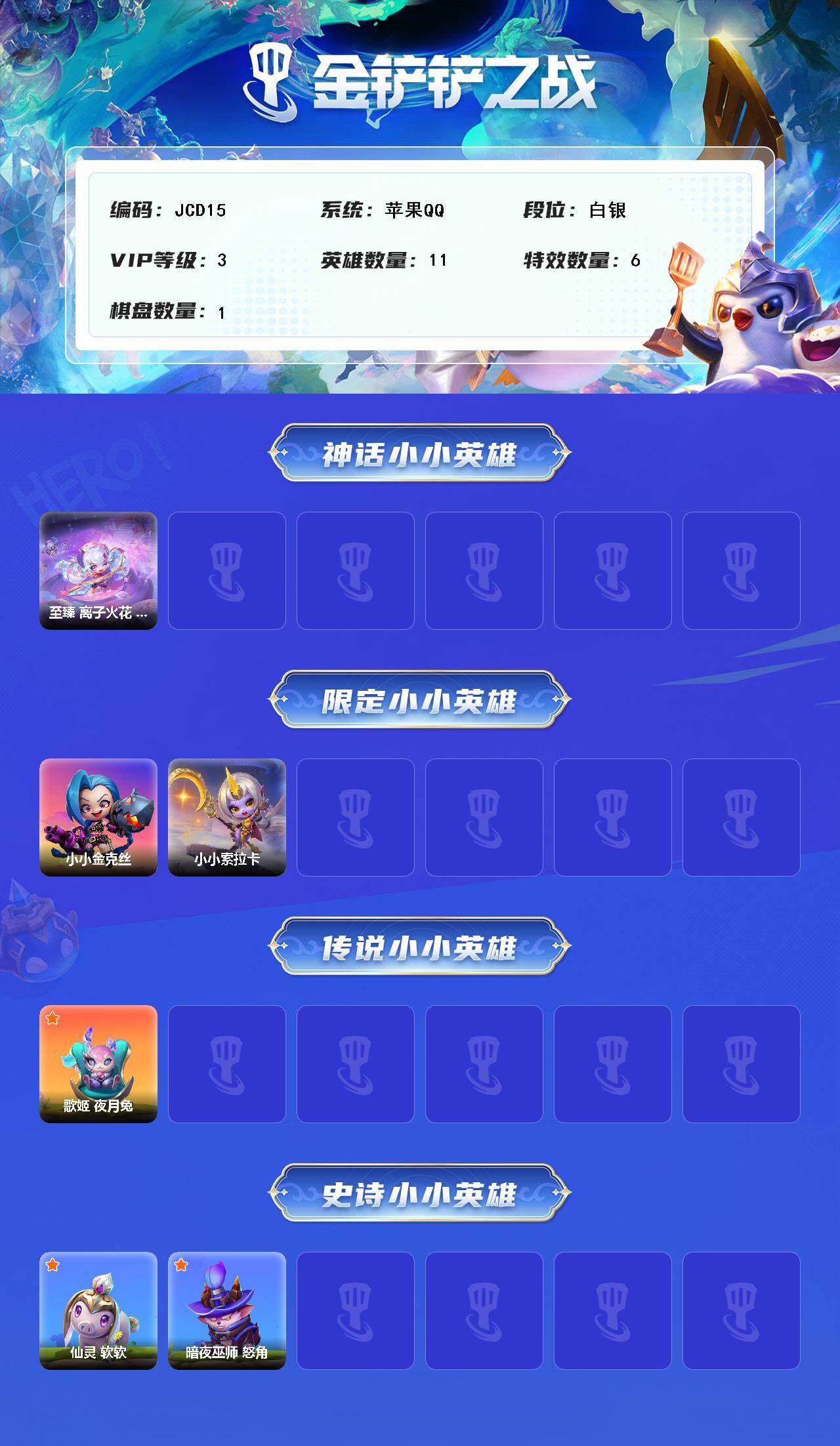【JCD15】11小小英雄/1棋盘/至臻 离子火花 小小格温/小小金克丝/小小索拉卡/歌姬 夜月兔/仙灵 软软/暗夜巫师 怒角