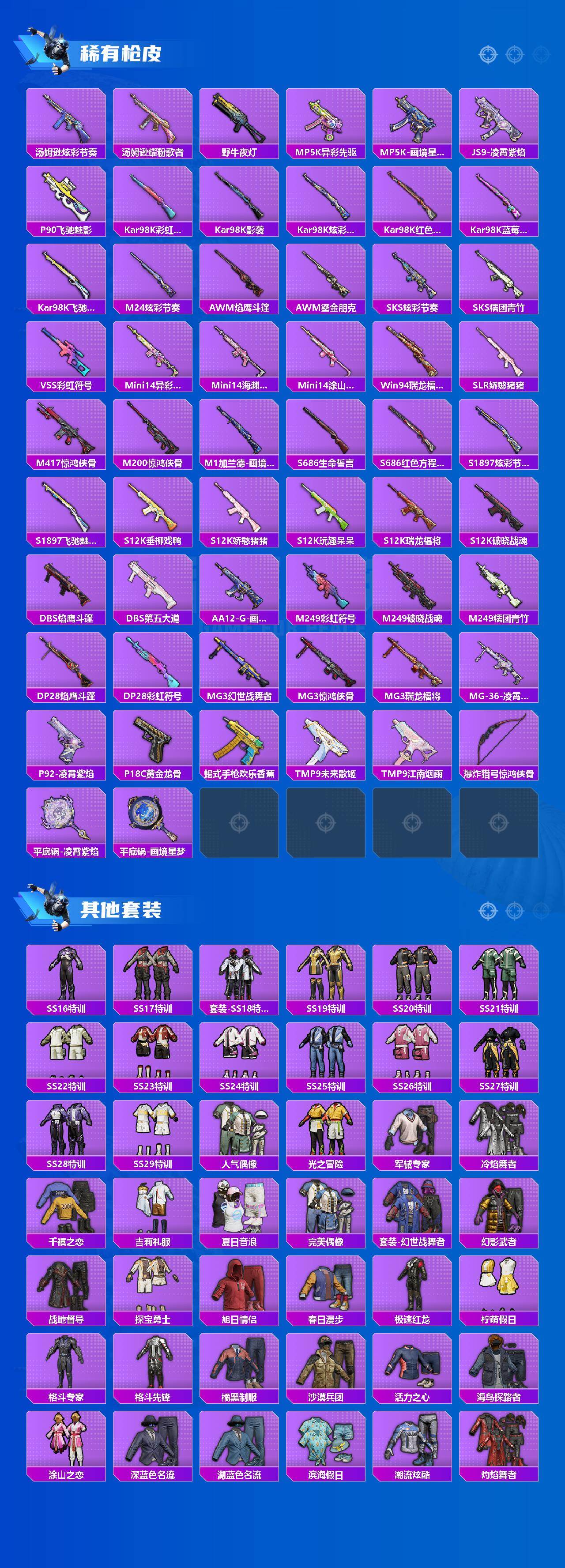 【A8248】安卓 【枪皮号 小丑鱼/Mark.06/AKM-绿萝繁花(五级)/SCAR-L-锦绣绵绵(五级)/M416-电玩时刻(五级)/】手Q-1粉装-7特效枪-0载具-0粉色飞行器-54710热力值-13王牌印记-167套装-183枪皮