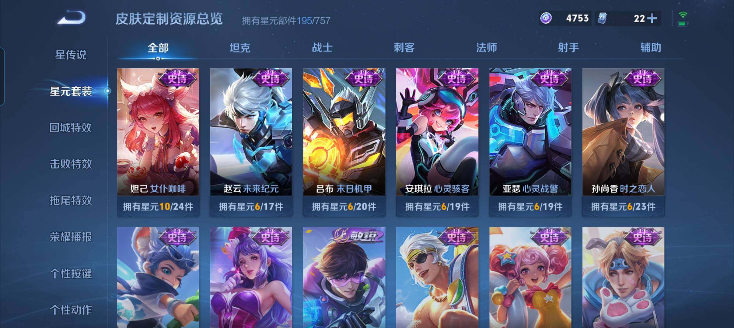 283皮肤-1典藏皮肤-22传说,3市标,19县标,8按键