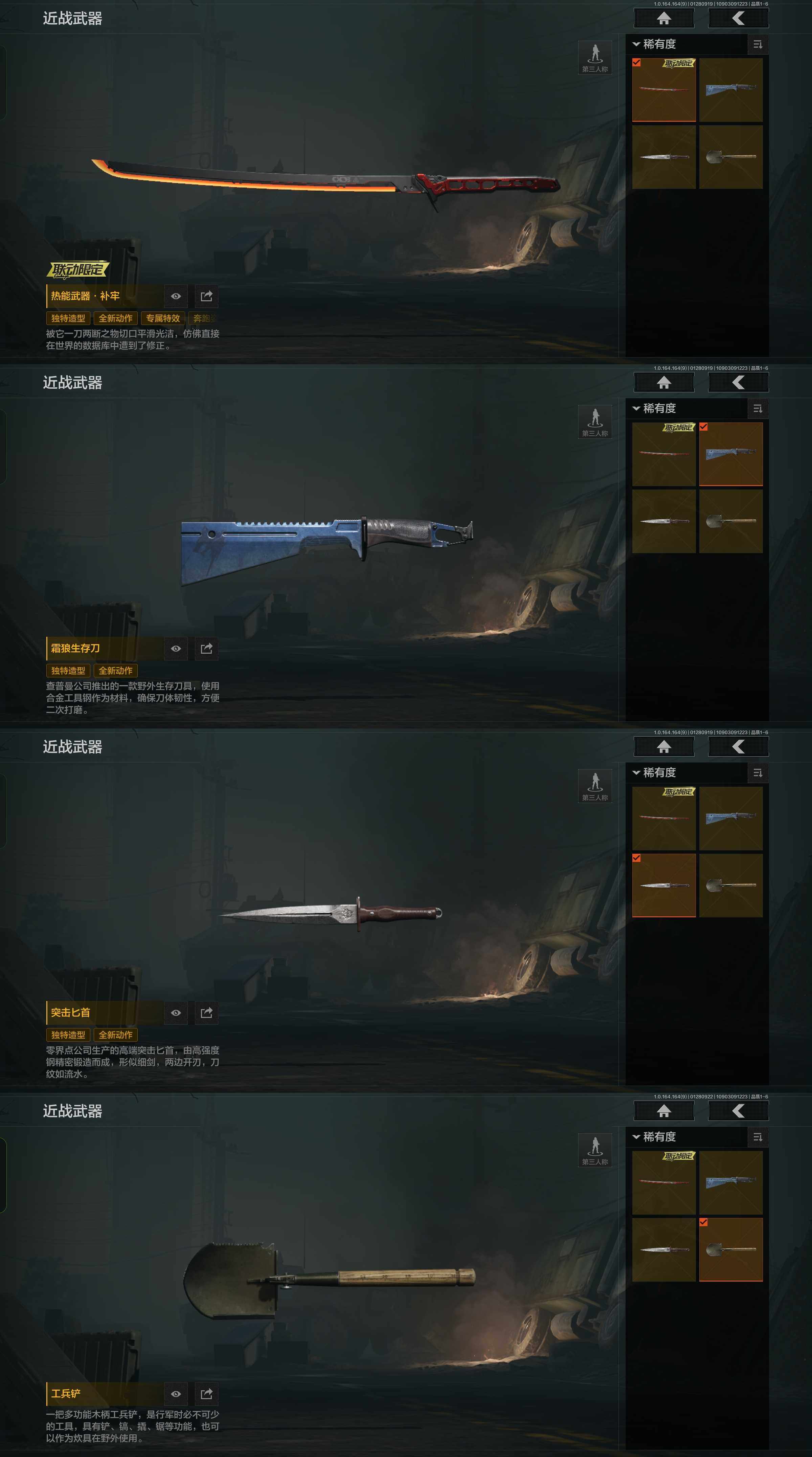 z44,4把刀热能武器.补牢突击匕首霜狼生存刀,仓库51.8M科恩币42561