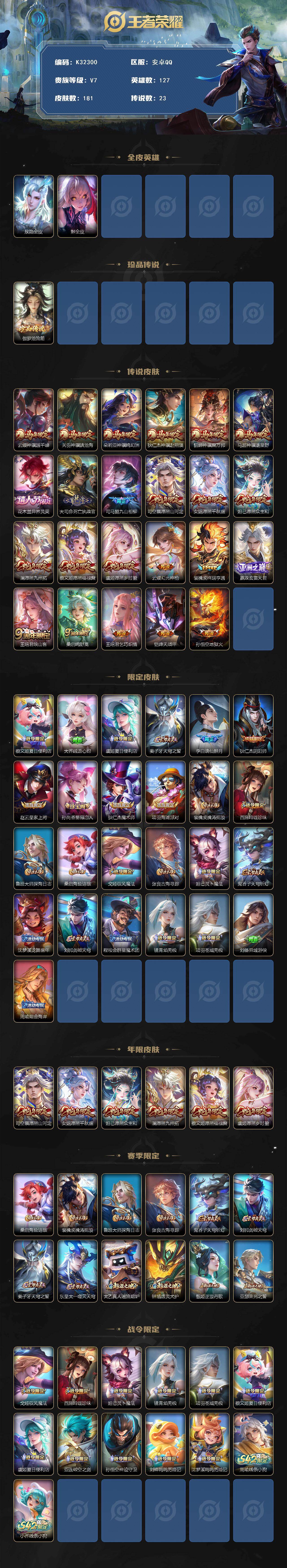 V7-最强王者段位-127英雄-181皮肤-1珍品传说-23传说