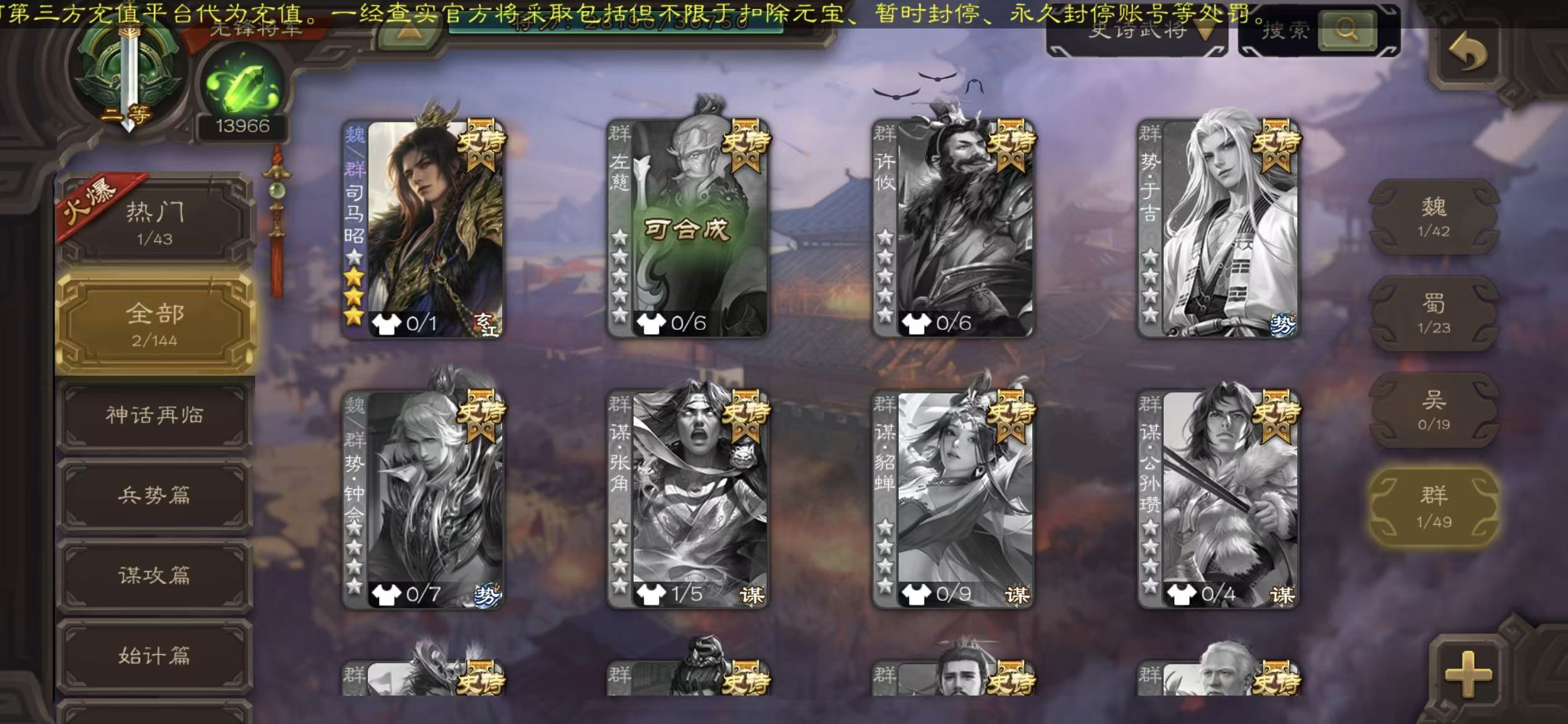 先锋司马昭界黄忠1.4万将魂3.8万羽毛三卡
