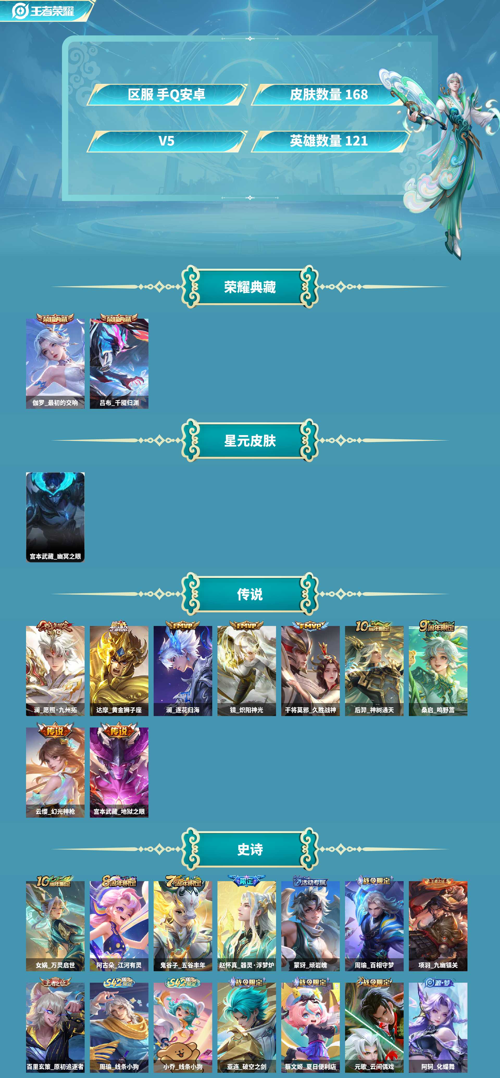 皮肤数量167印记总数7V5非凡王者可修改账号类型2荣耀典藏