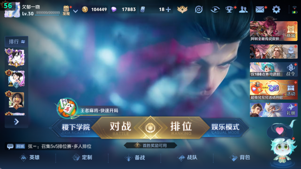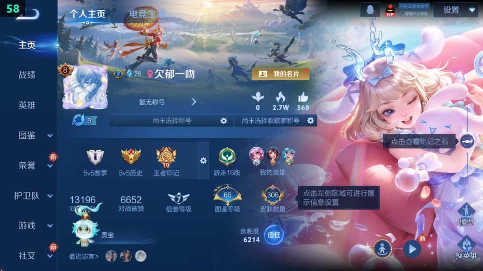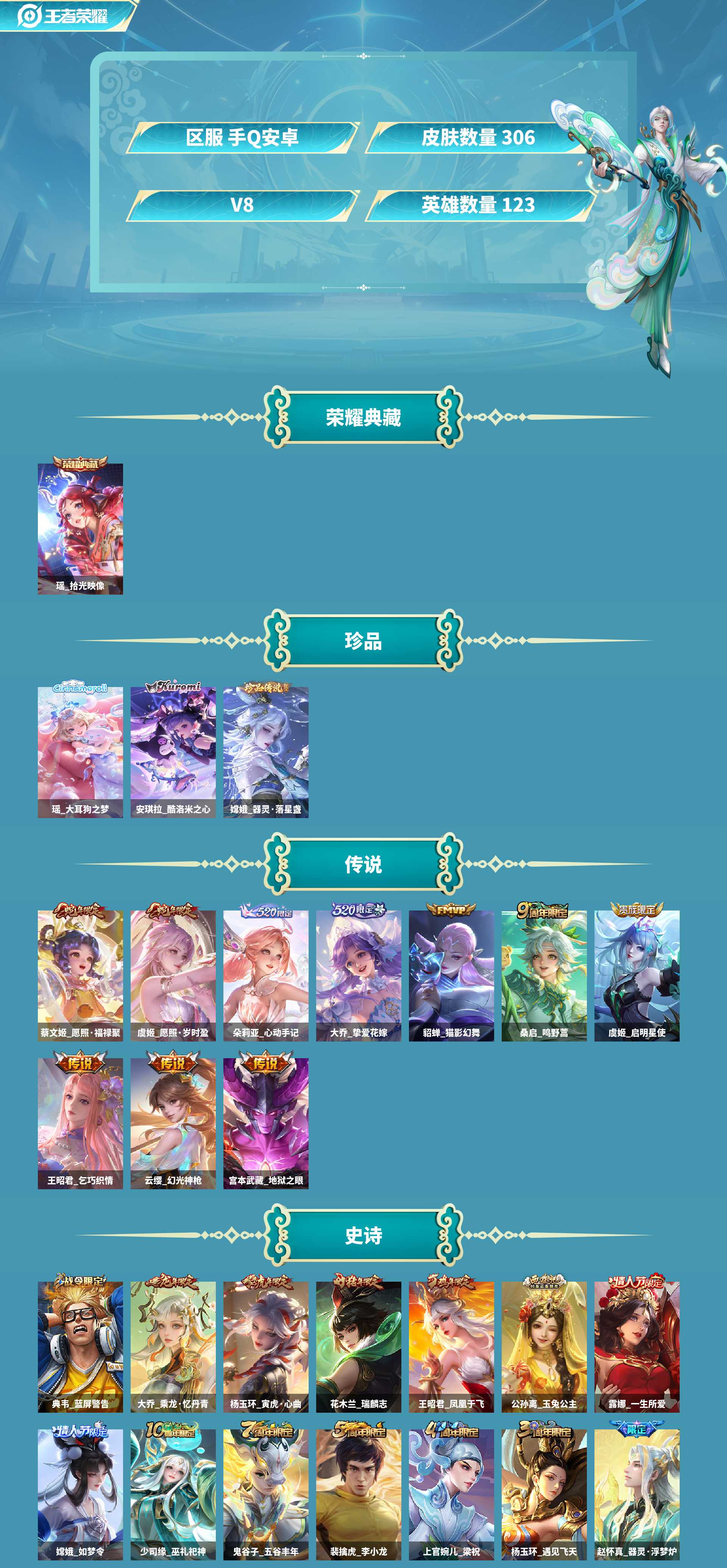 精品女软辅!皮肤数量306印记总数11V8永恒钻石暂时不可修