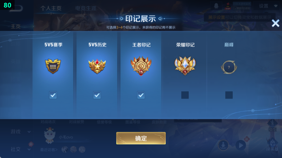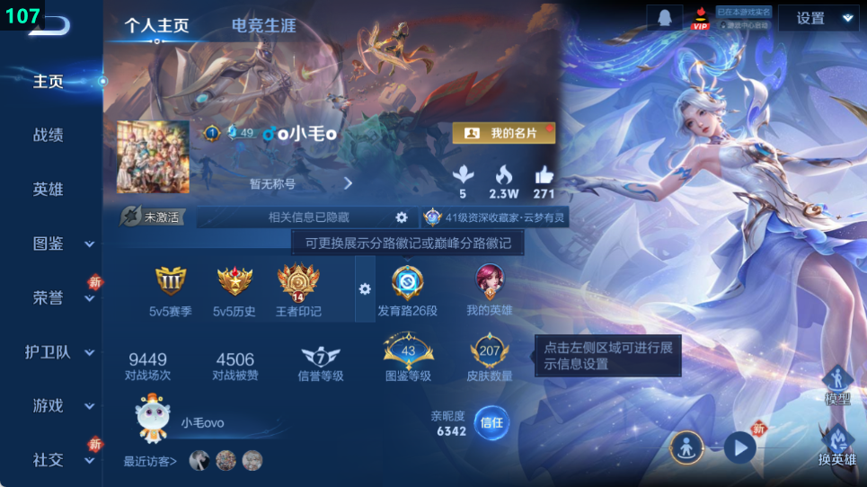 皮肤数量207印记总数15V5至尊星耀可修改账号类型1荣耀典