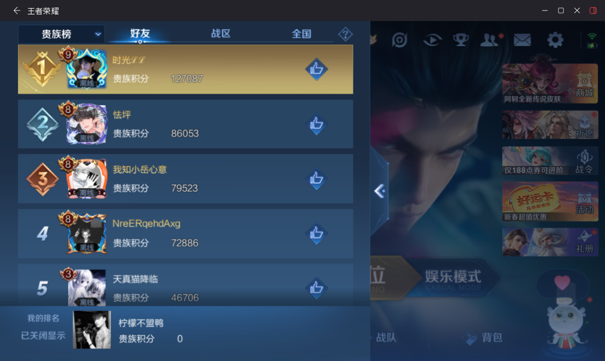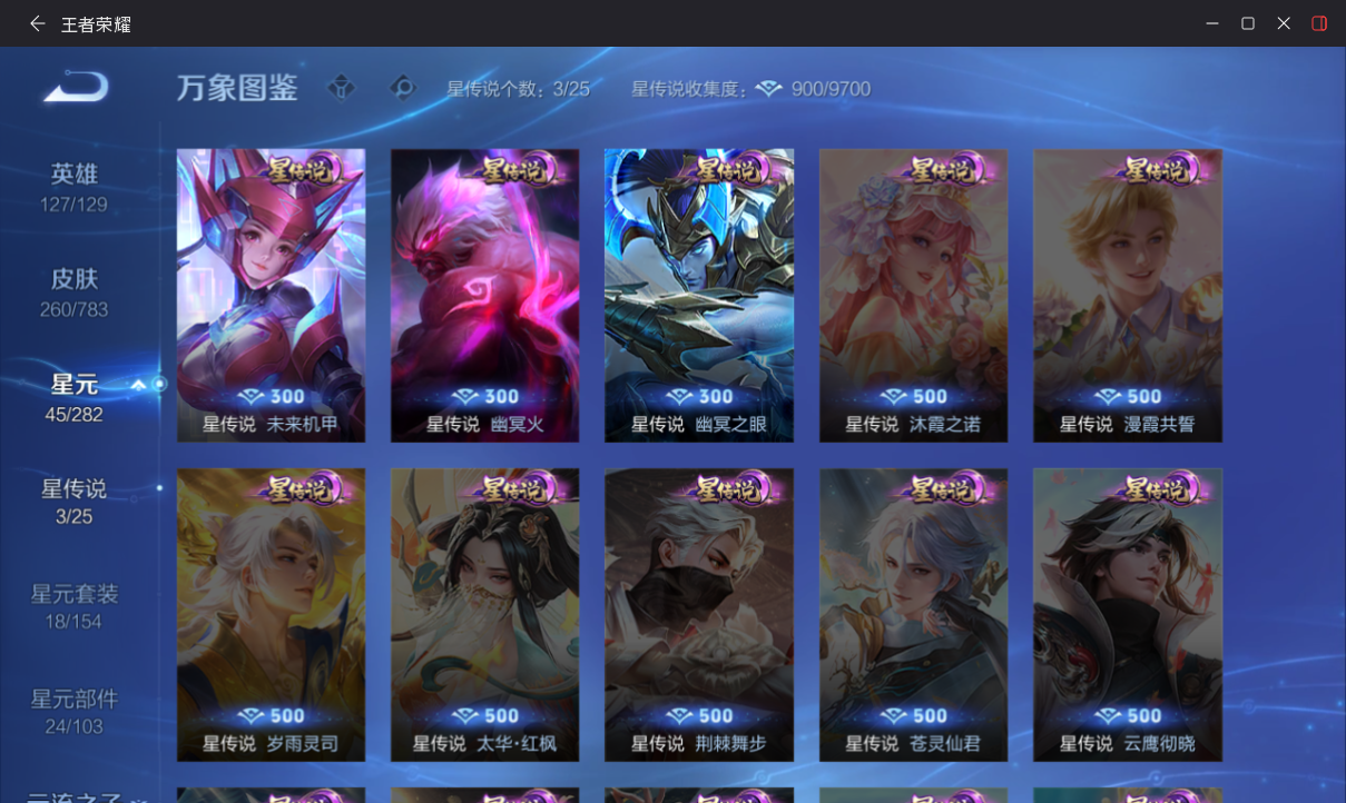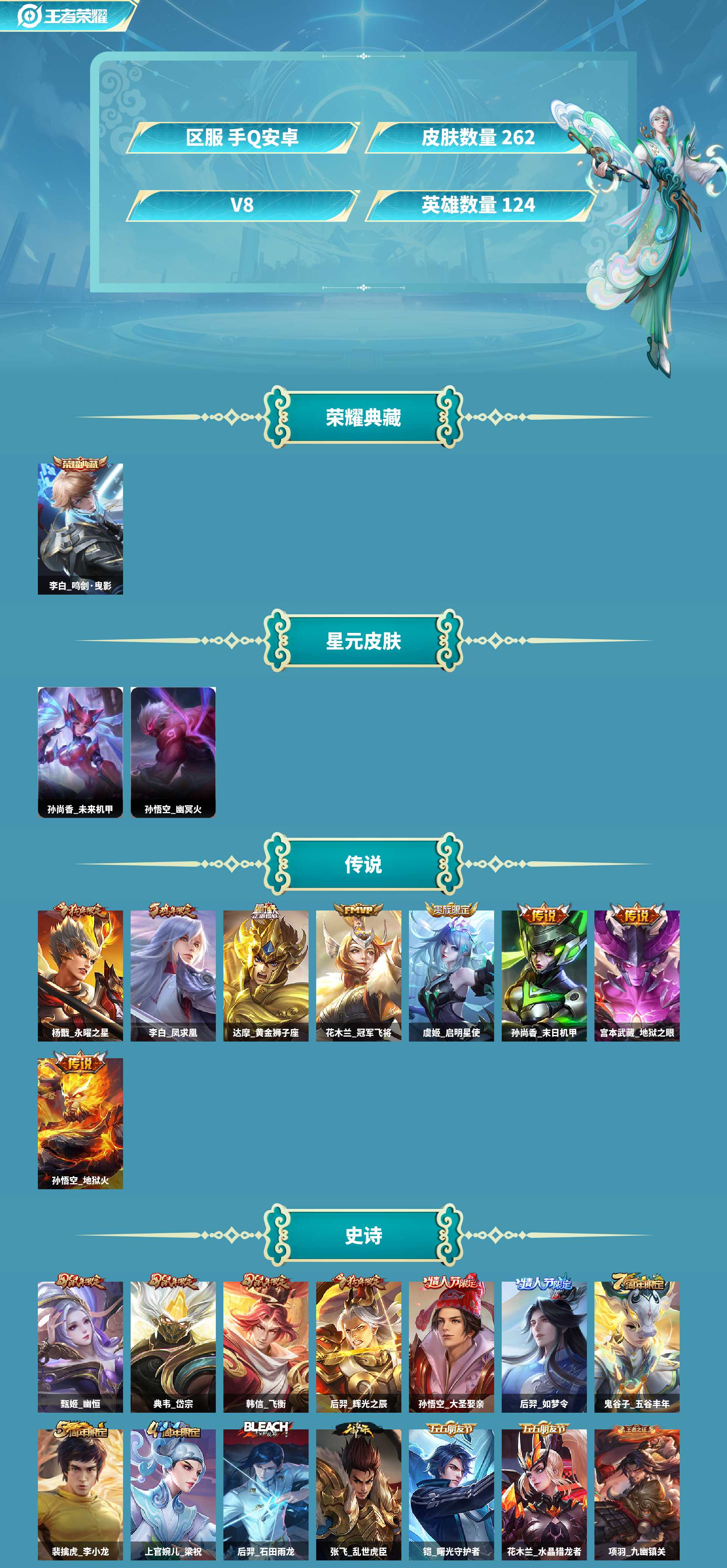皮肤数量260印记总数9V8永恒钻石可修改账号类型1荣耀典藏