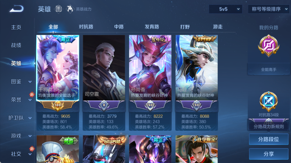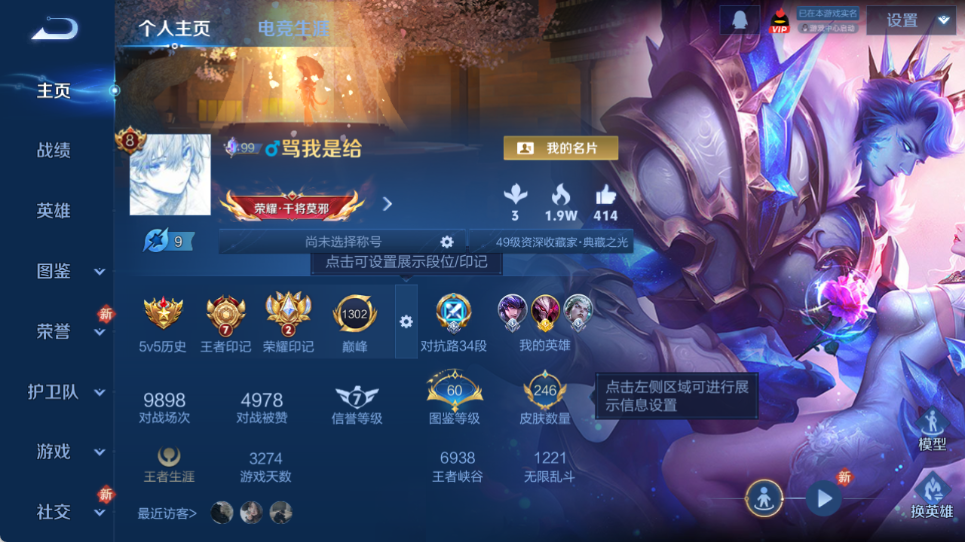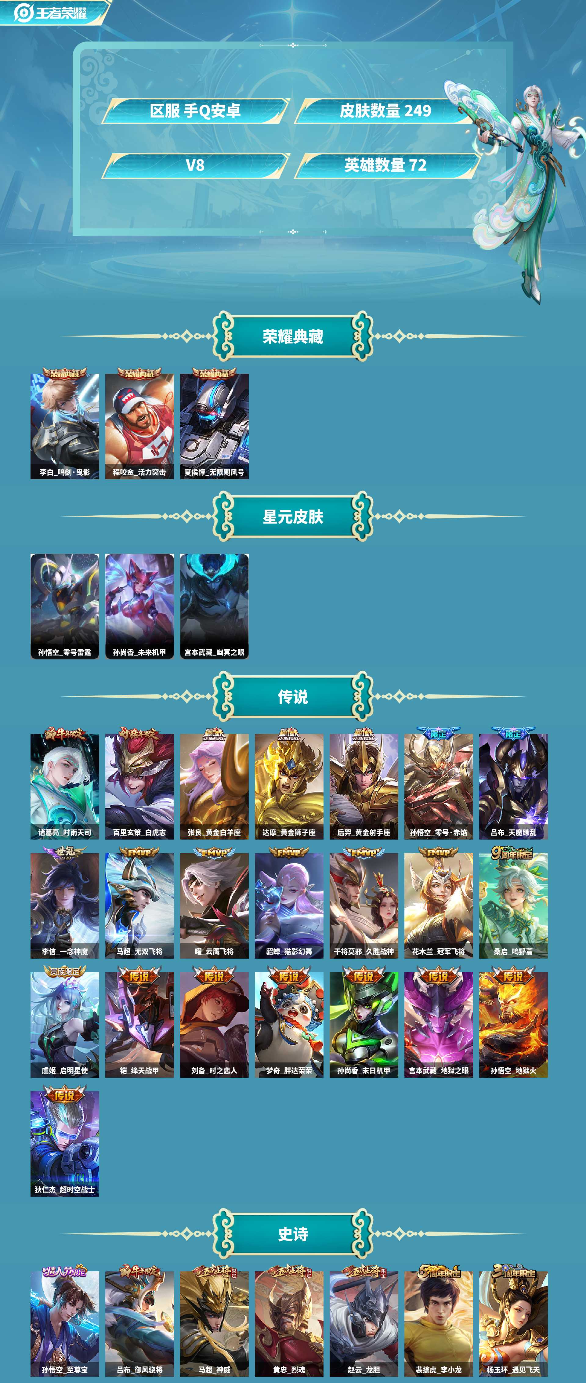 9.6k金标干将皮肤数量249印记总数9V8最强王者暂时不可
