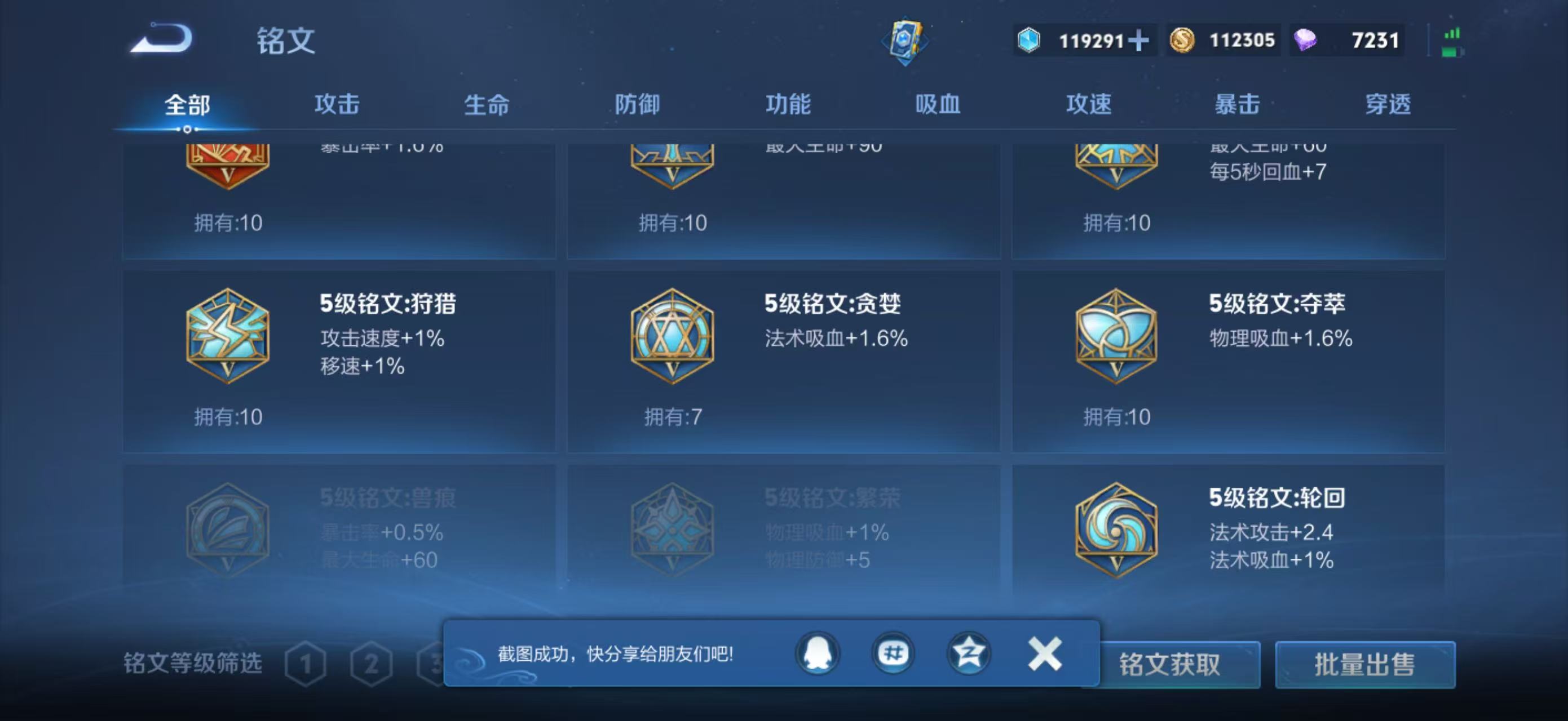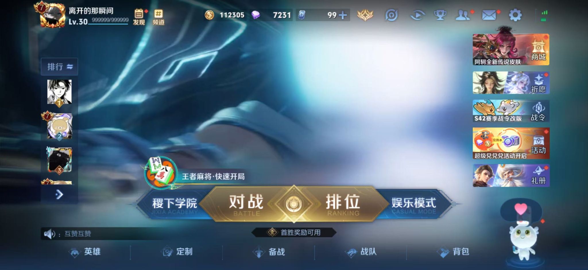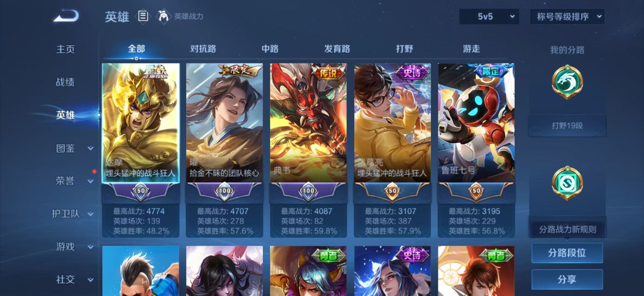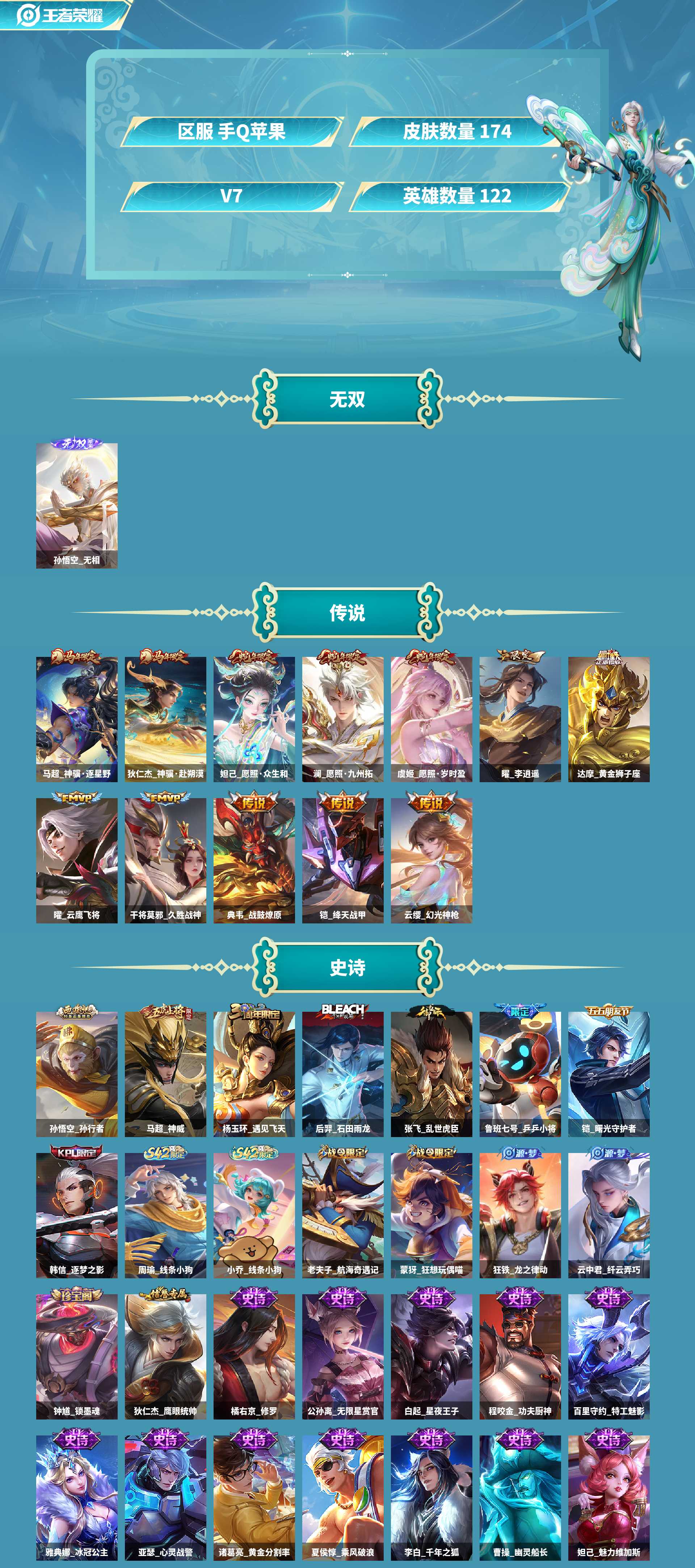 皮肤数量174印记总数6V7荣耀王者暂时不可修改账号类型3天