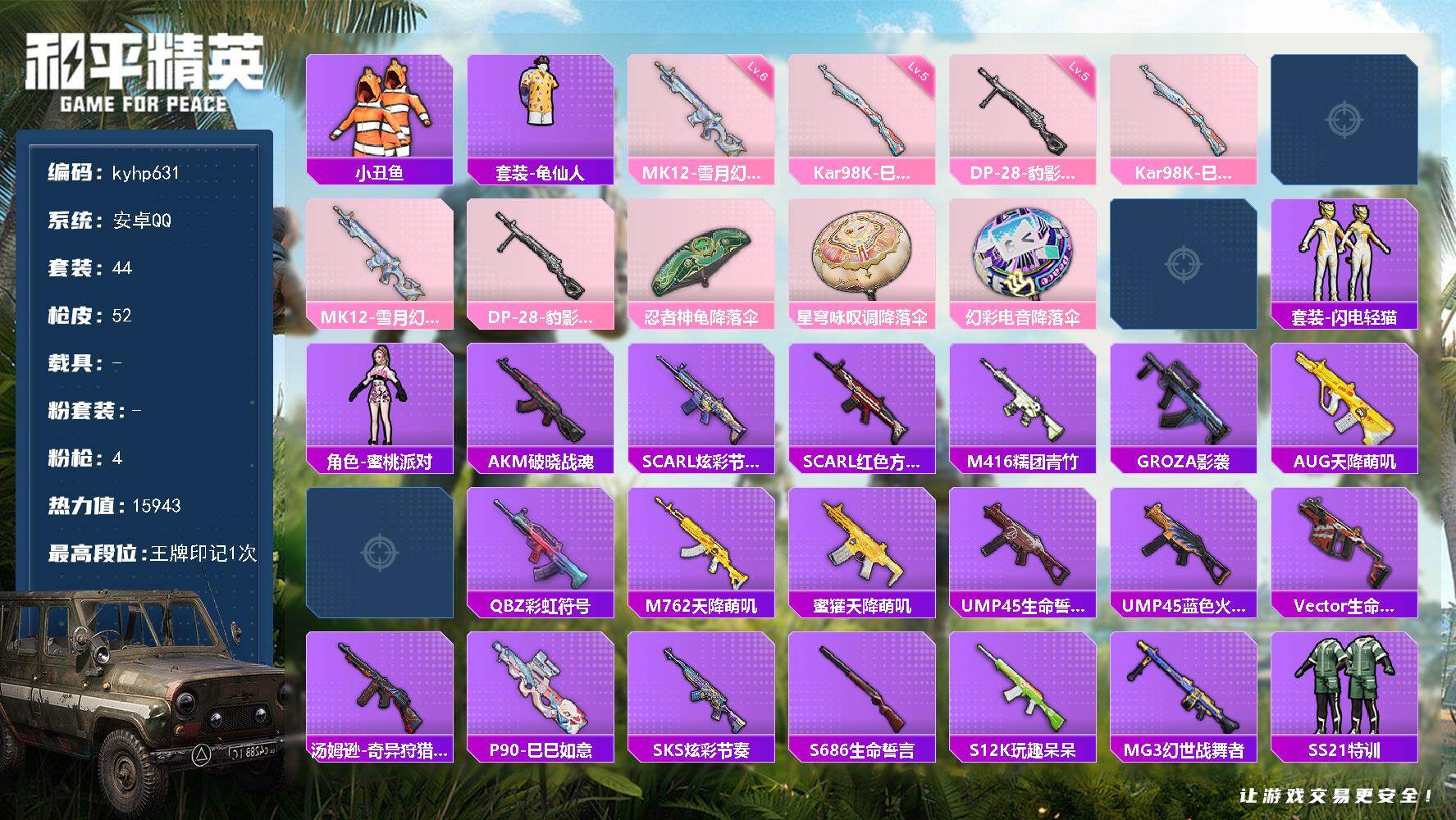 安卓 手Q-0粉装-4特效枪-0载具-0粉色飞行器-1594