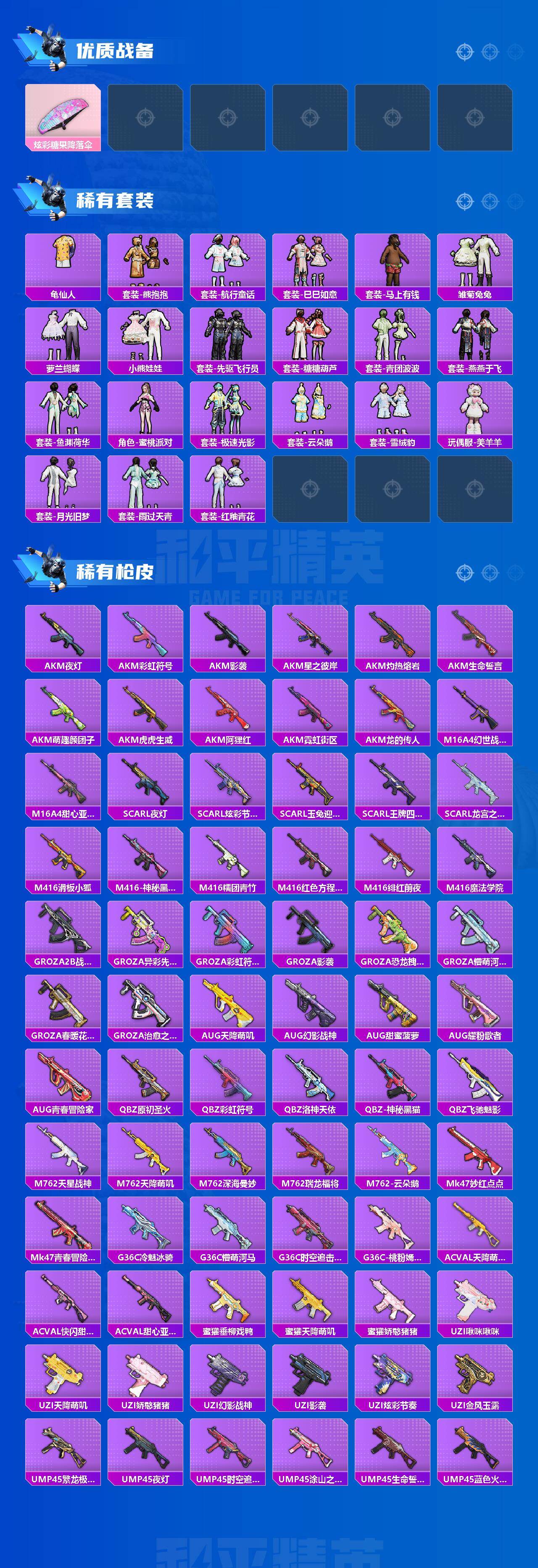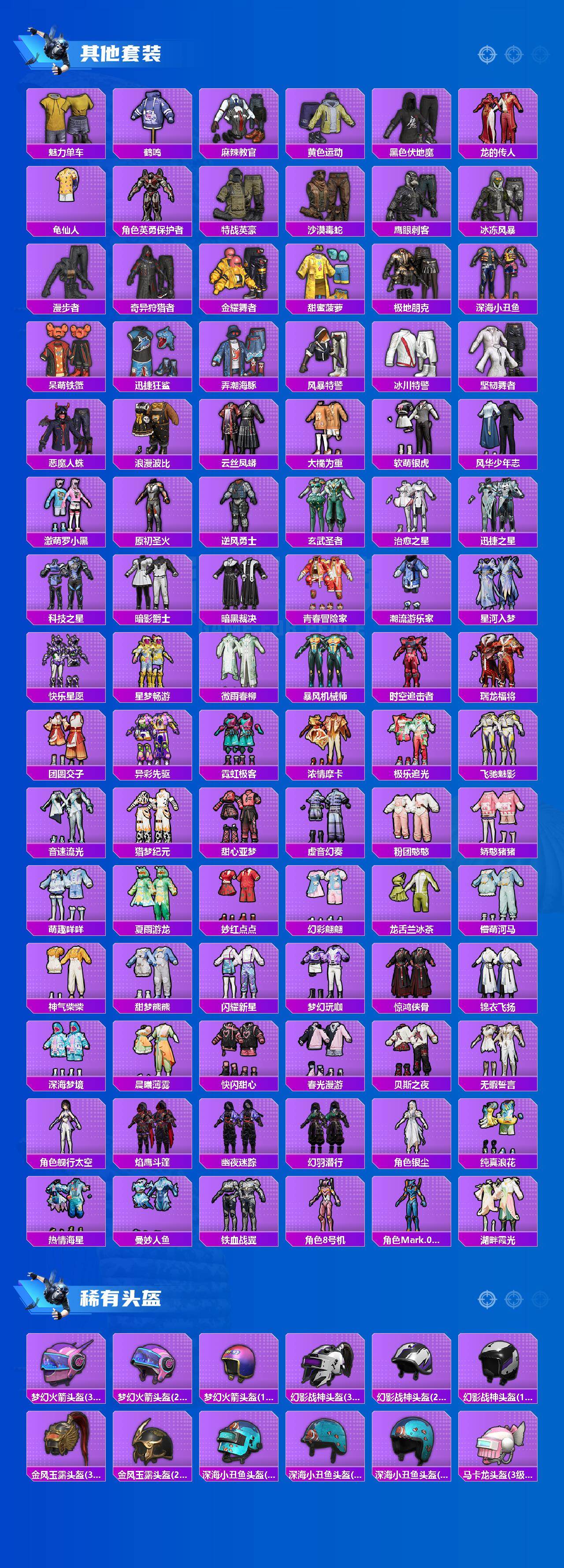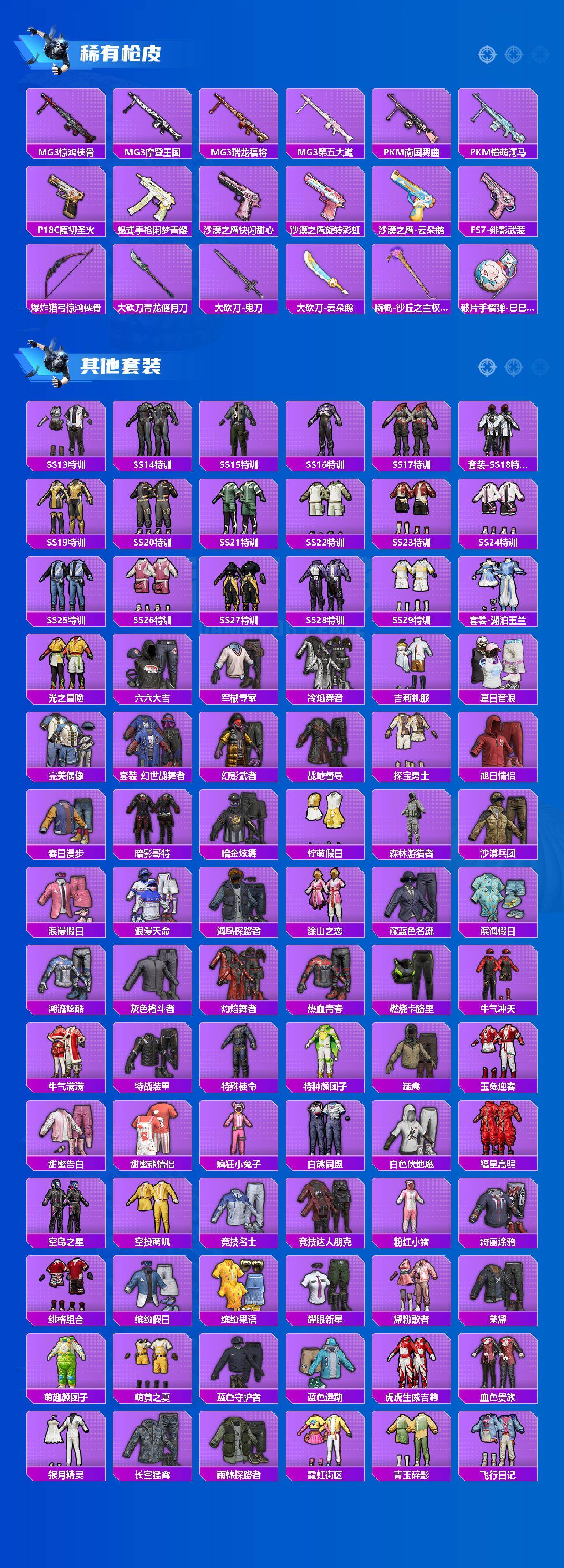 【热门品类】:粉装-梦幻火箭,绝对防御上衣,套装-浪漫天命,套装-都市猎人,套装-派对舞王,套装-深海小丑鱼,套装-小丑鱼,套装-奇异狩猎者,套装-胖达团团,套装-忍者信条,角色-忠真马岱,套装-龟仙人,套装-暗影哥特,套装-浪漫波比,套装-粉红小猪,角色-8号机,角色-Mark.06,大砍刀-青龙偃月刀