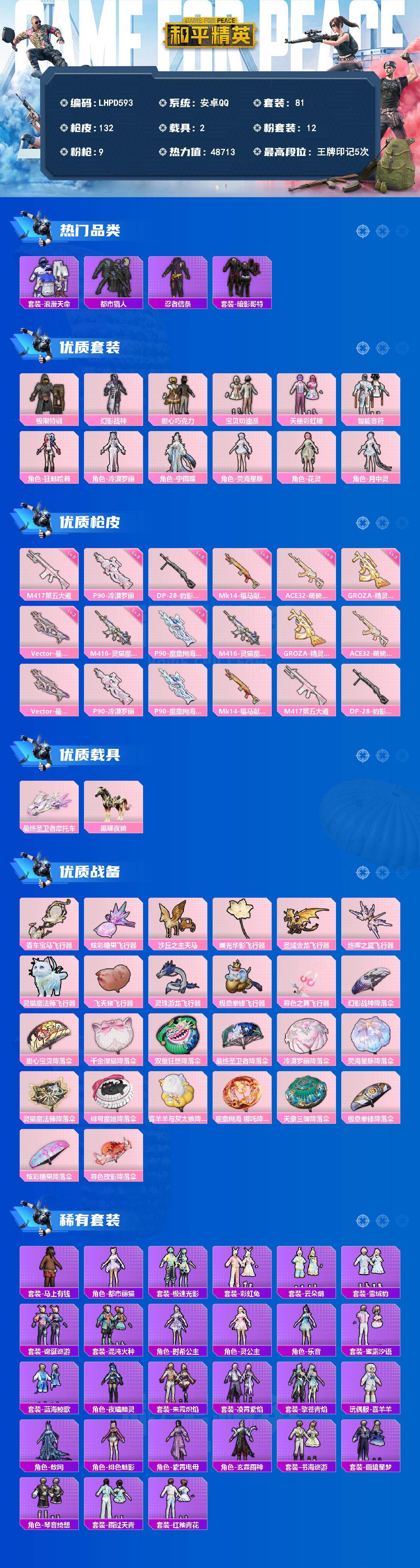 【店主推荐捡漏号!可直接换绑】安卓 手Q-12粉装-9特效枪-2载具-12粉色飞行器-48713热力值-5王牌印记-81套装-132枪皮【热门品类】:套装-浪漫天命,套装-都市猎人,套装-忍者信条,套装-暗影哥特【粉色套装】:粉装-极限特训,粉装-幻影战神,粉装-甜心巧克力,粉装-宝贝奶油派,粉装-天使彩虹糖,粉装-智能音符,角色-狂魅哈莉,角色-冷漠罗丽,角色-宁雨蝶,角色-荧海星豚,角色-花