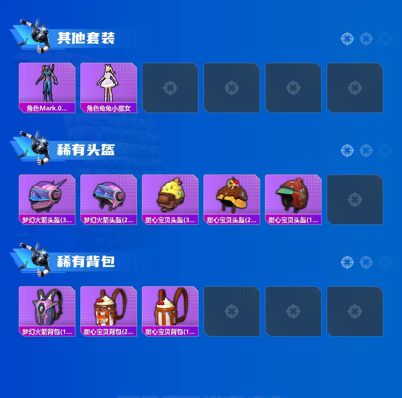 【粉色套装】:粉装-宝贝奶油派,粉装-天使彩虹糖,粉装-梦幻火箭,角色-电磁星,套装-创世·救赎,角色-星