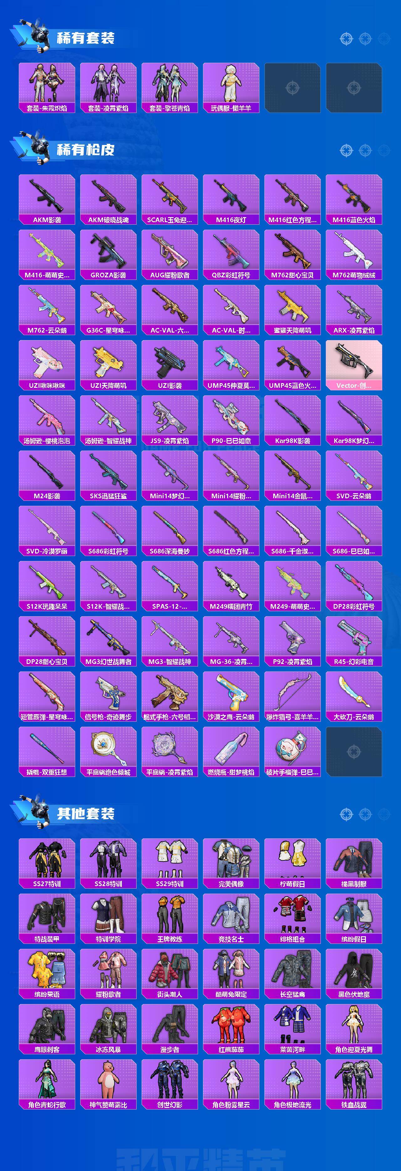 苹果 手Q-2神装-9粉装-6特效枪-9载具-6粉色飞行器-76644热力值-9王牌印记-105套装-188枪皮