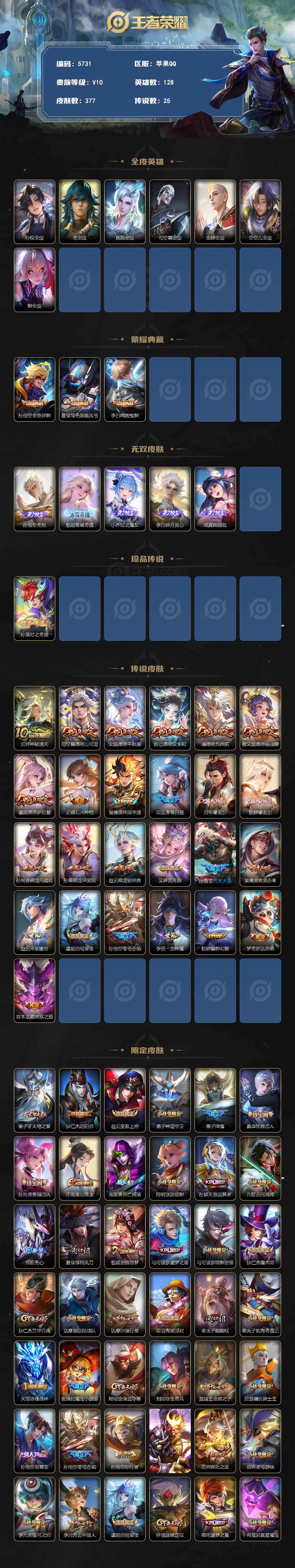 377皮3典藏25传说5无双1珍品传说V10