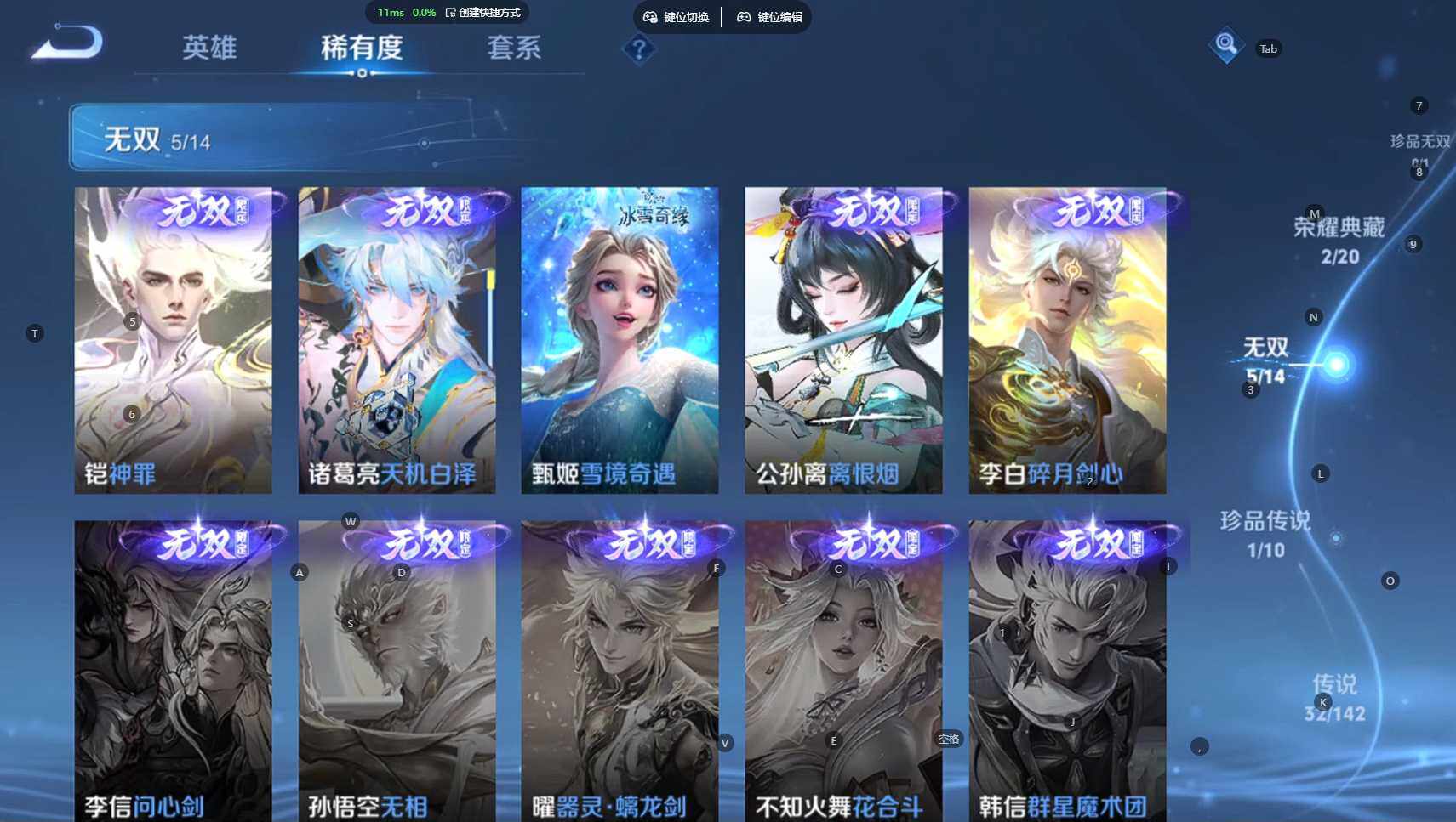 V9-最强王者段位-128英雄-282皮肤-2典藏皮肤-5无双-1珍品