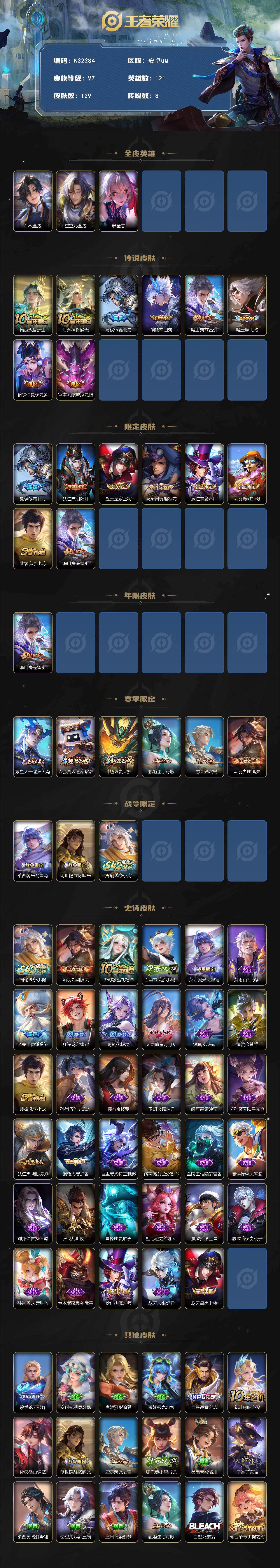 安卓Q-V7-最强王者段位-121英雄-129皮肤-8传说-34史诗【英雄全皮
