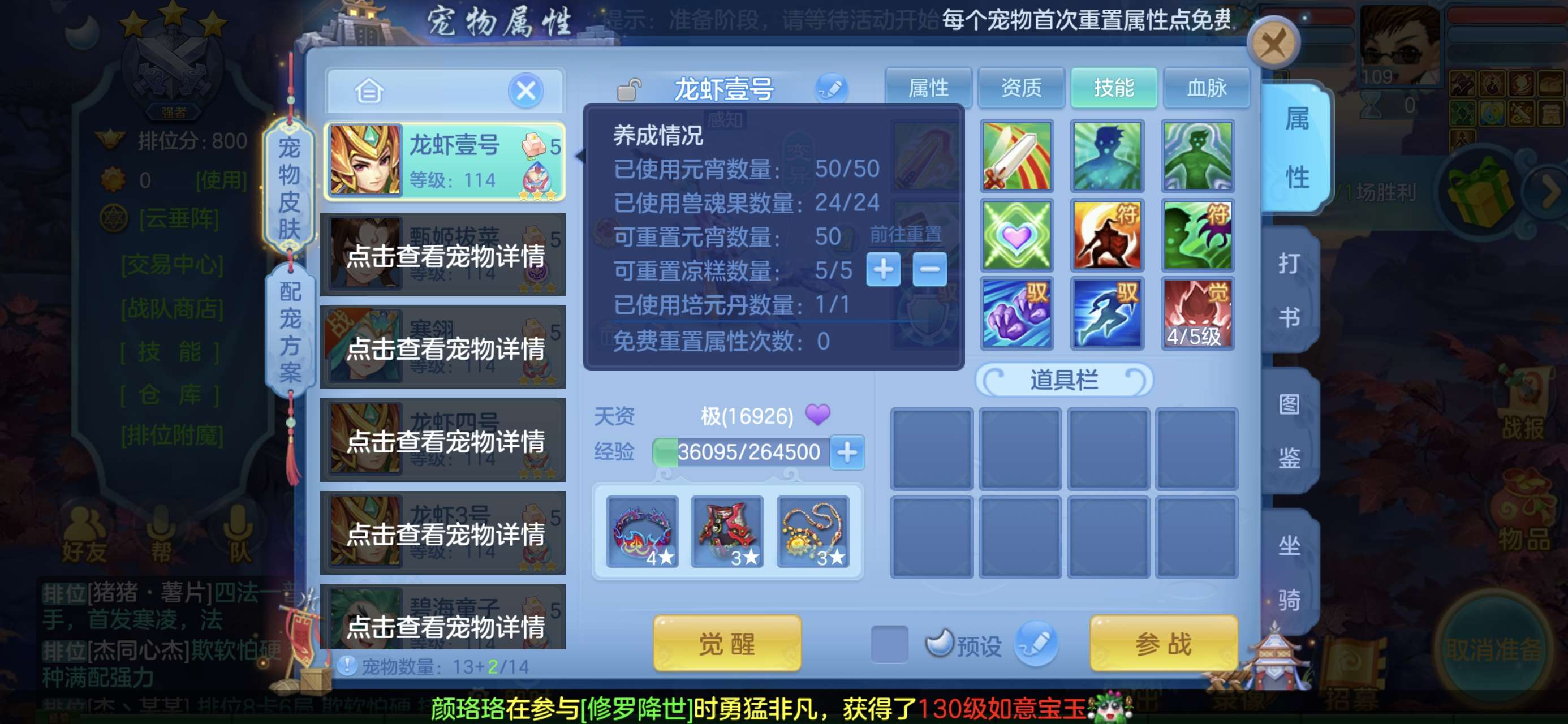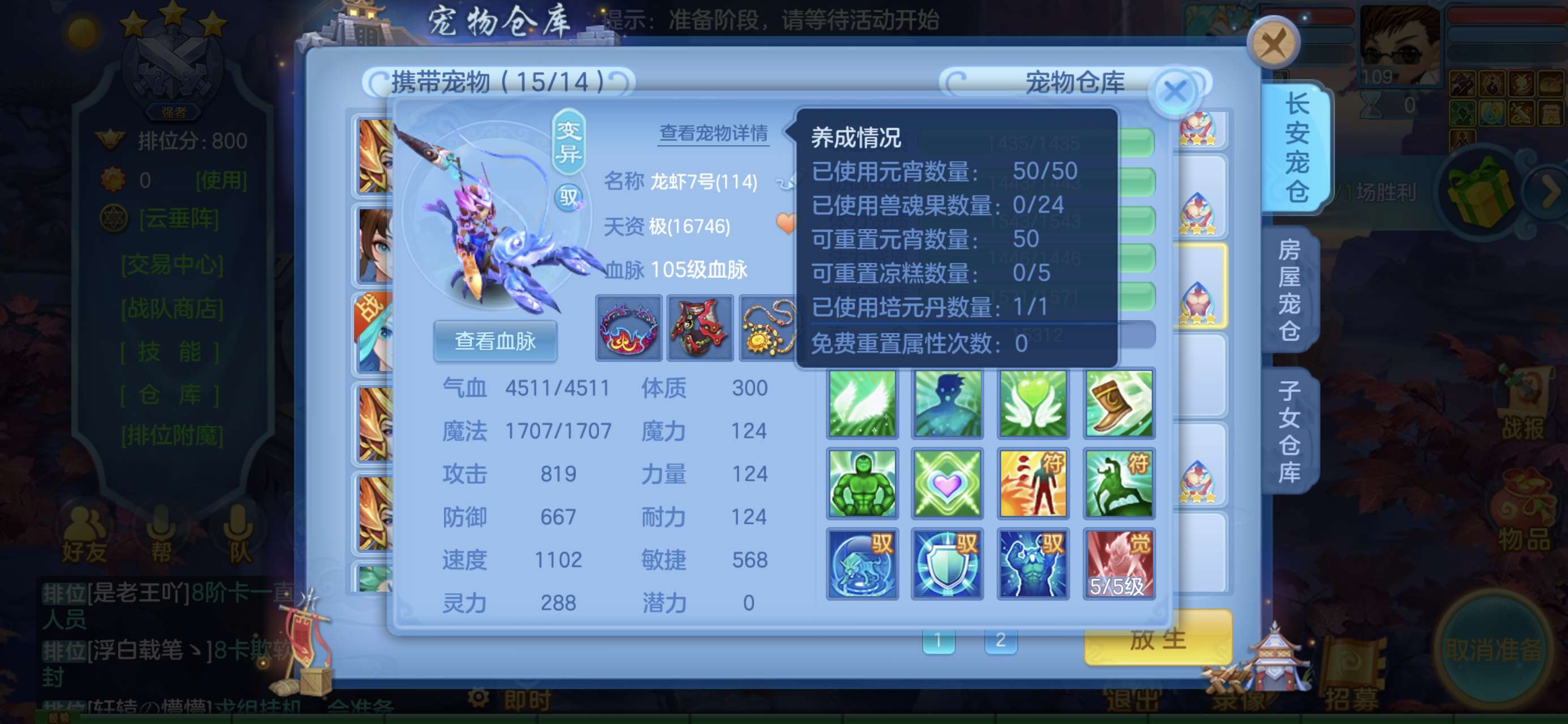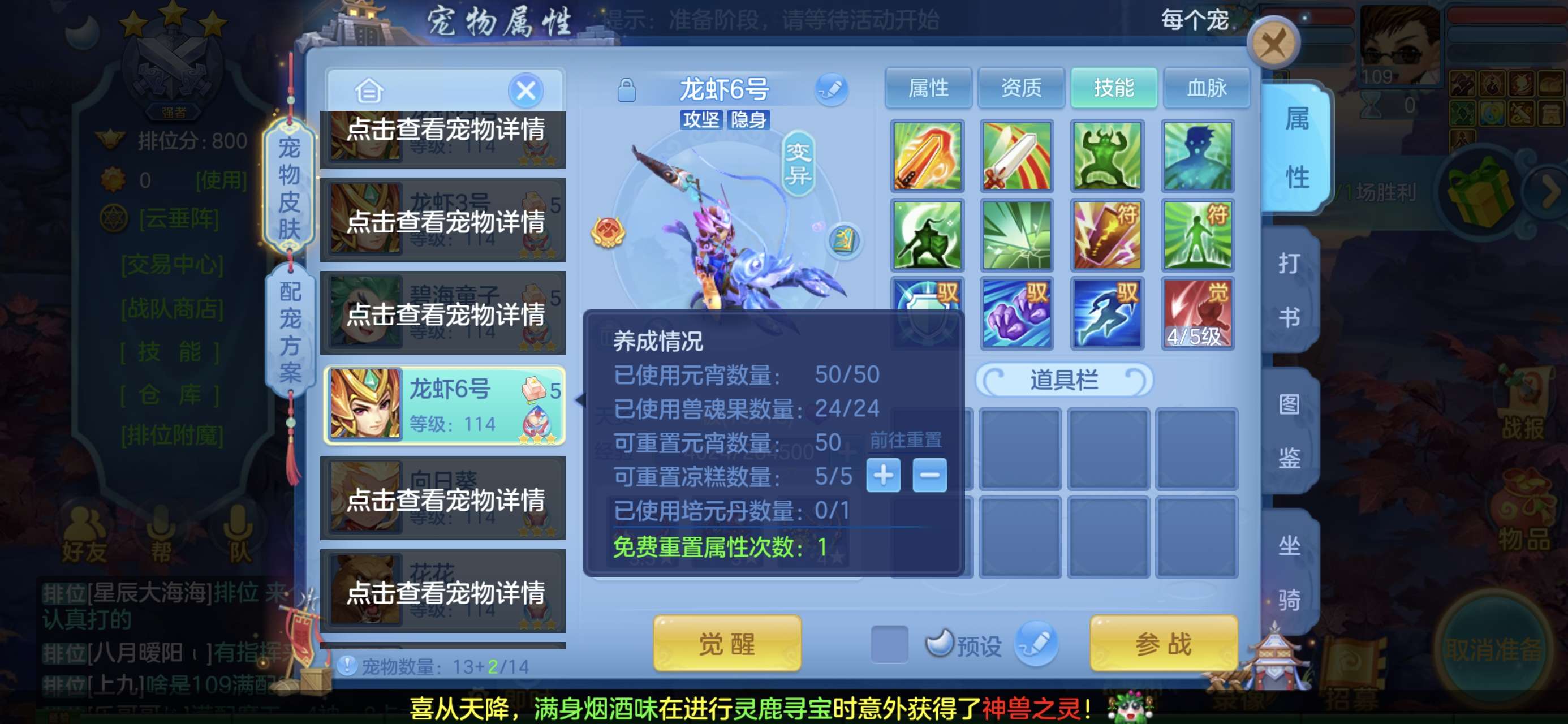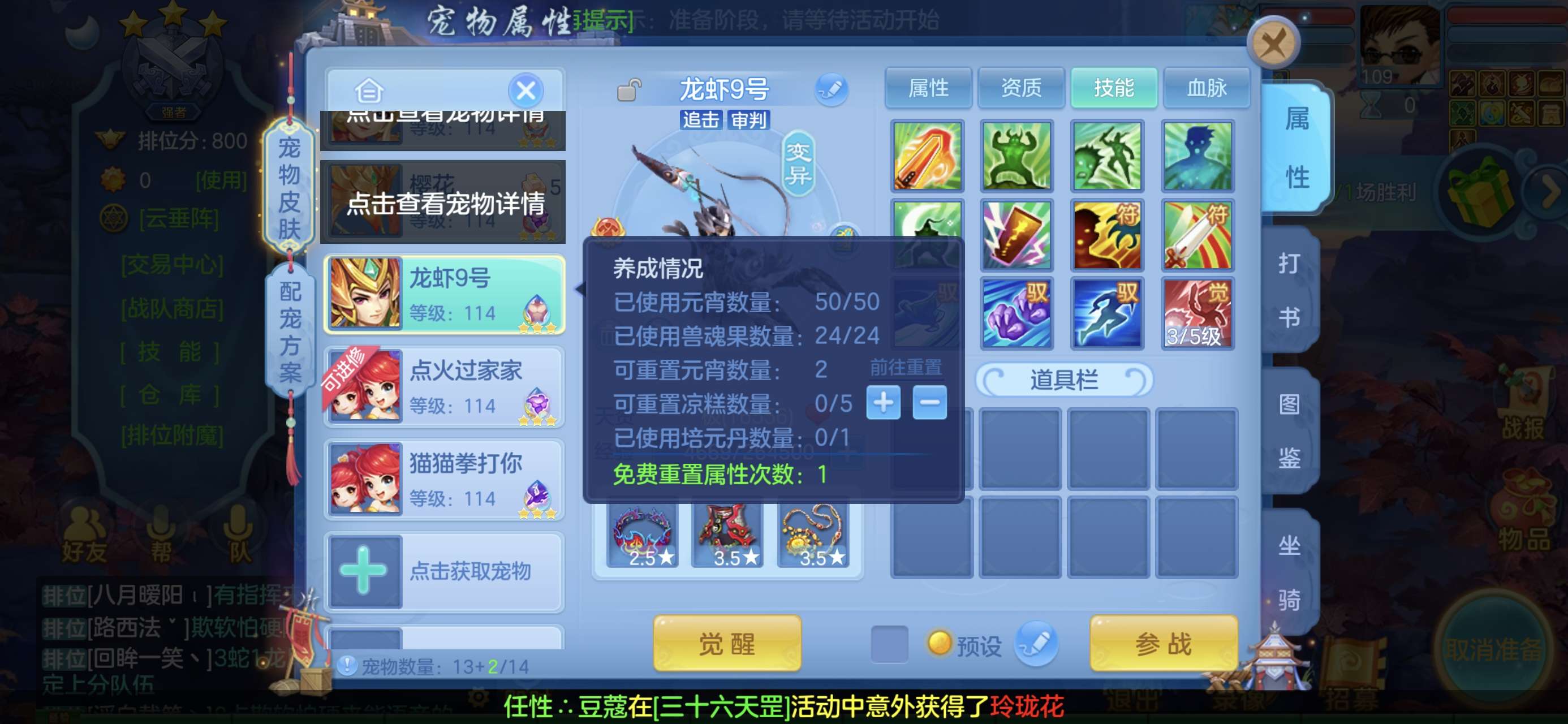 15个半满兽魂2内胆蛇1强化玉龙血脉2龙虾2九头剑木海马碧海桂花月光沧海满13段无双重