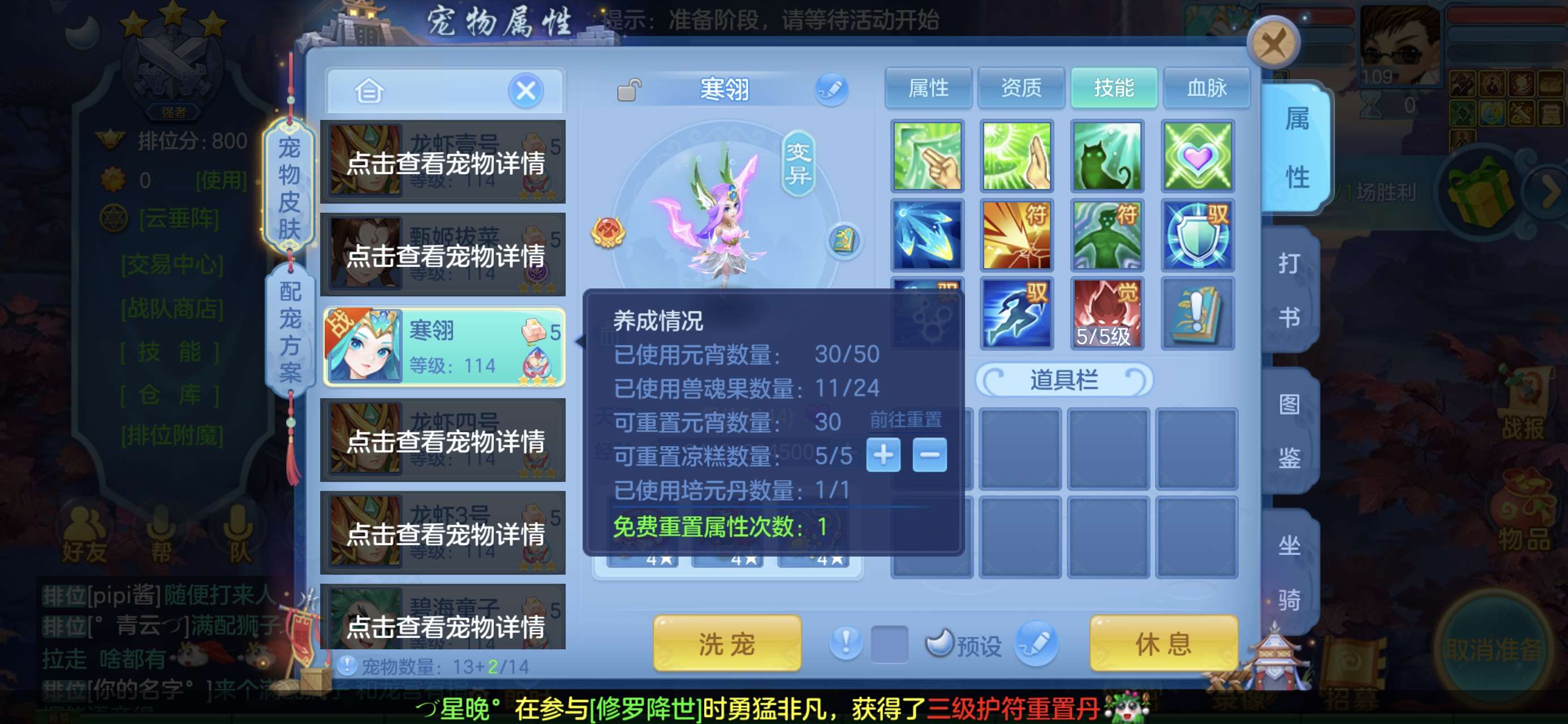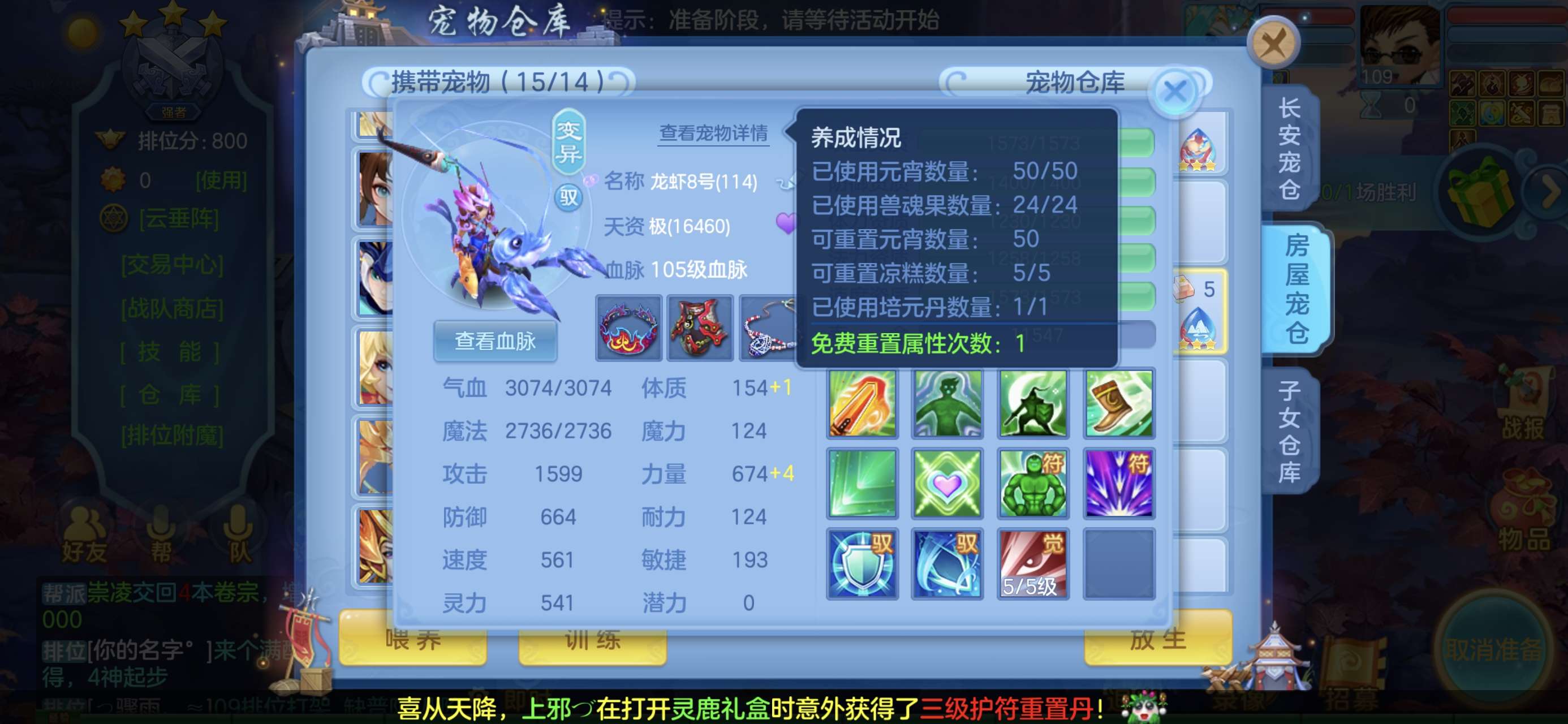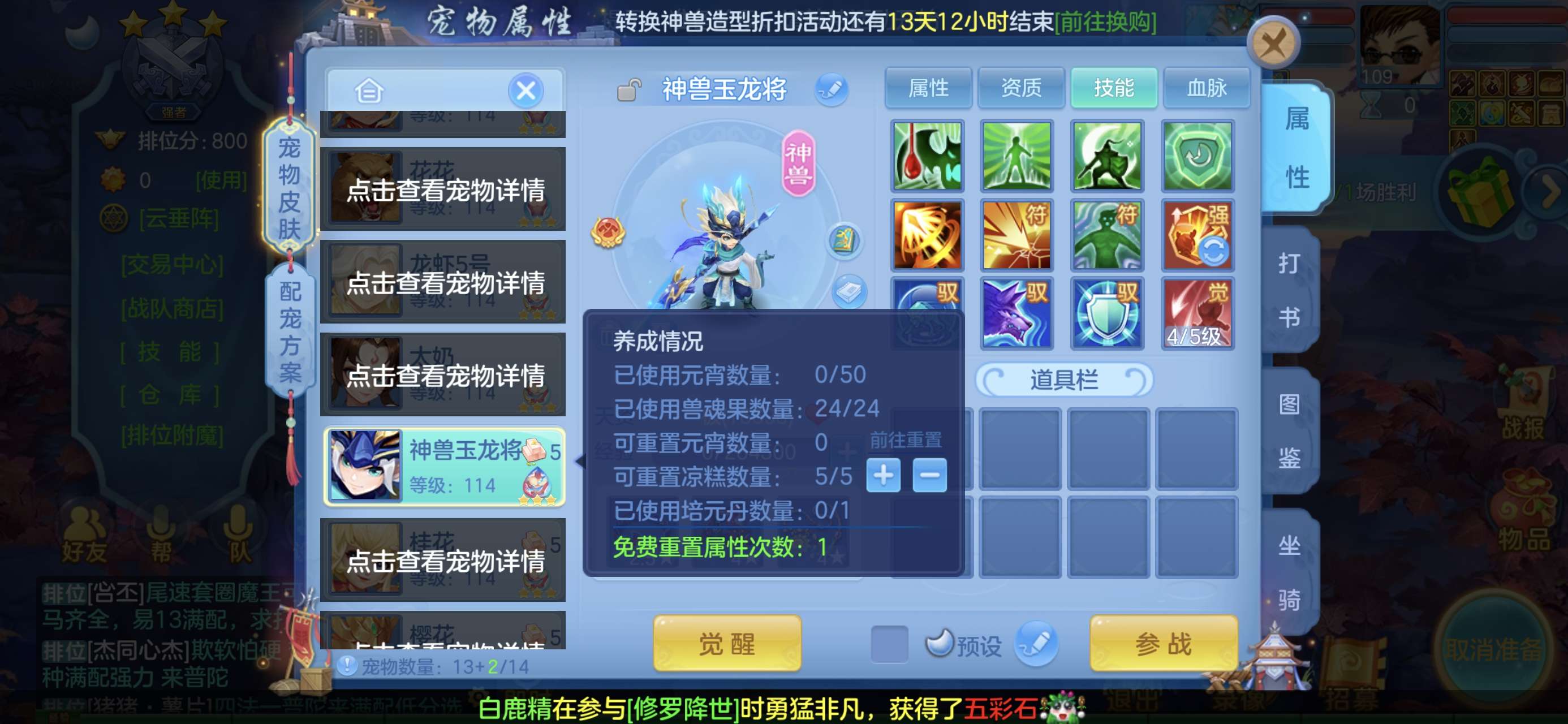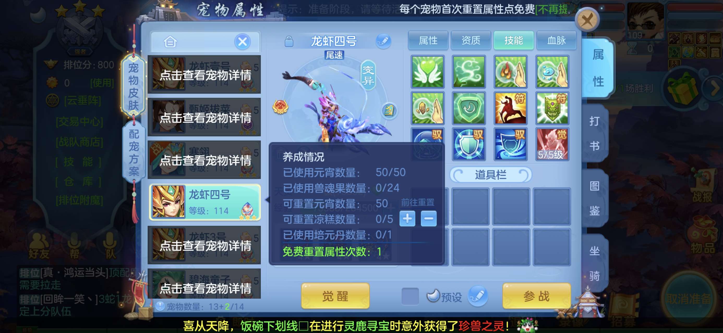 15个半满兽魂2内胆蛇1强化玉龙血脉2龙虾2九头剑木海马碧海桂花月光沧海满13段无双重