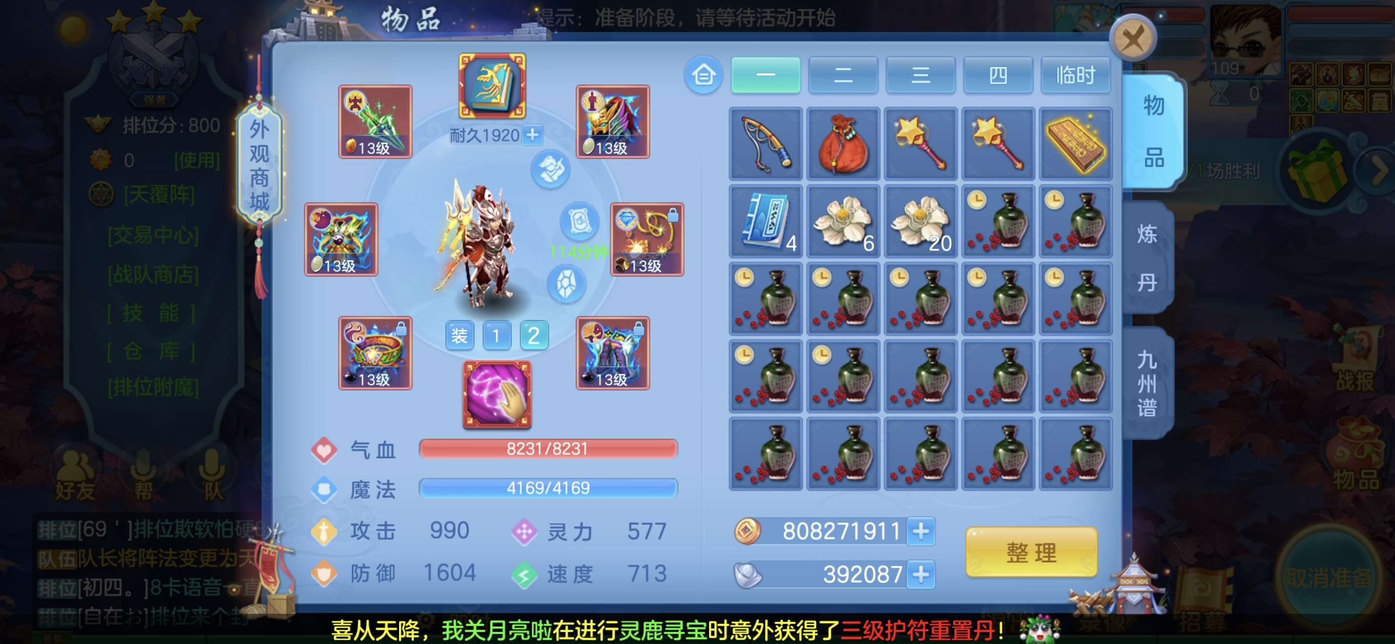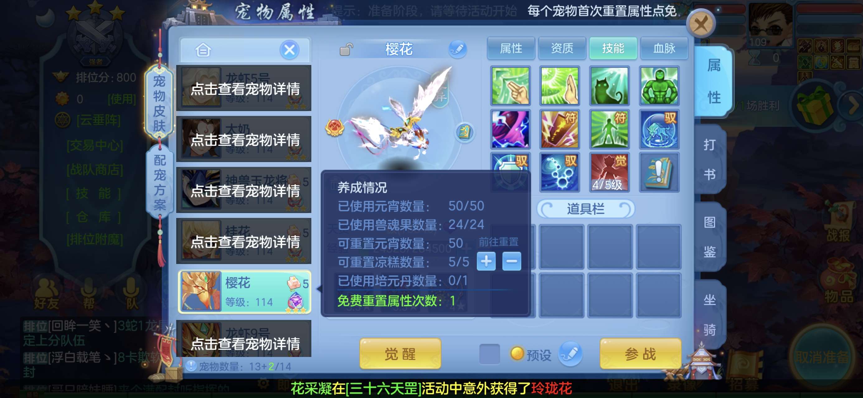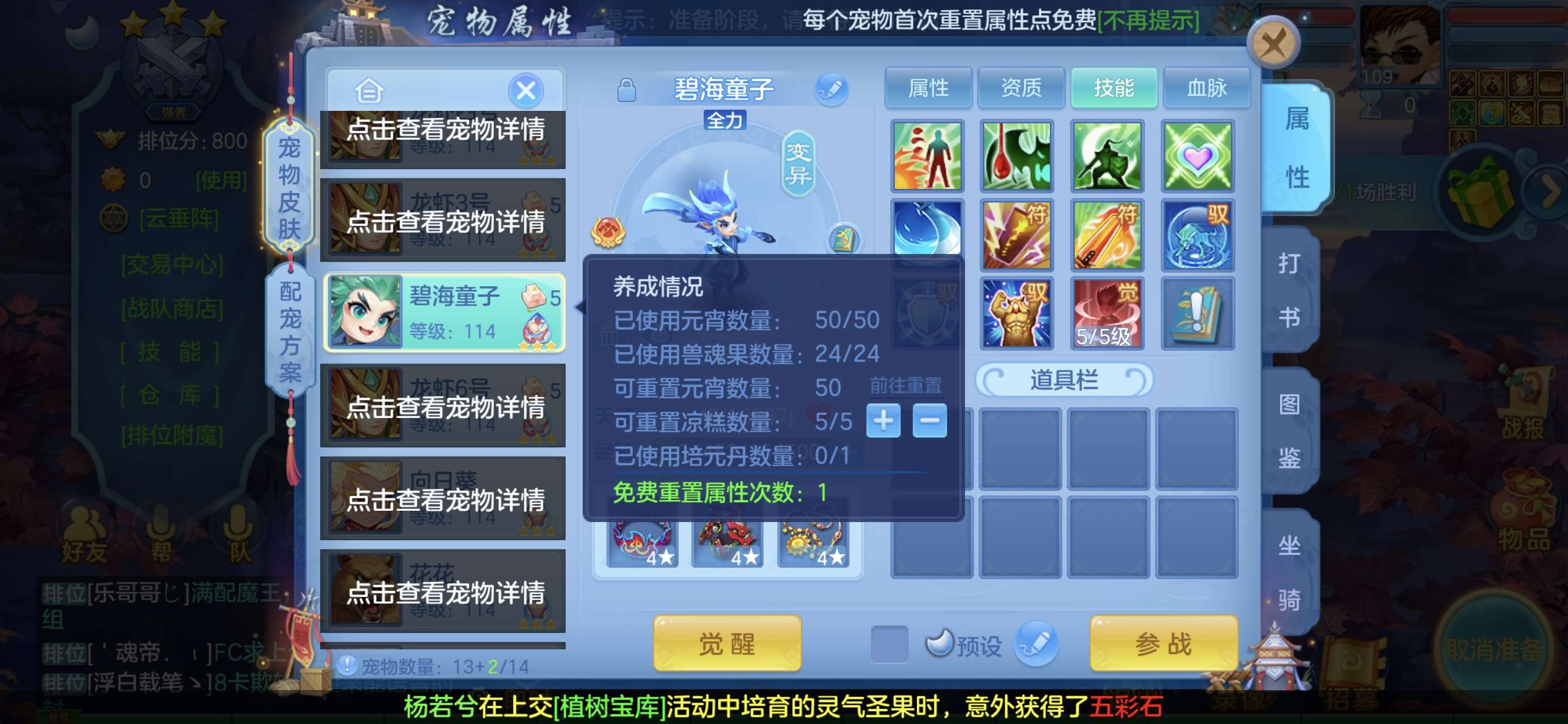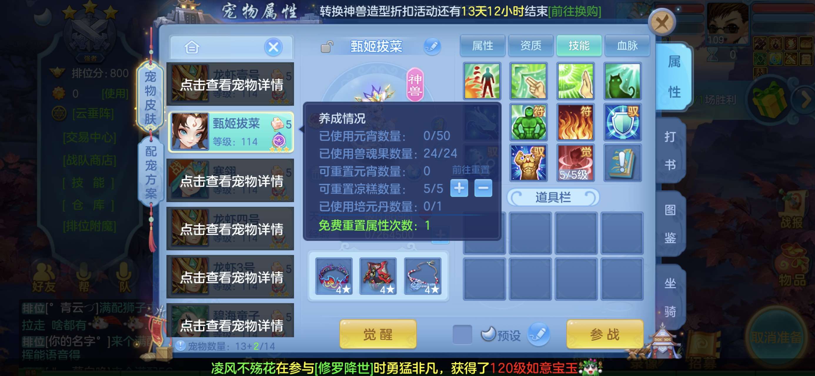 15个半满兽魂2内胆蛇1强化玉龙血脉2龙虾2九头剑木海马碧海桂花月光沧海满13段无双重