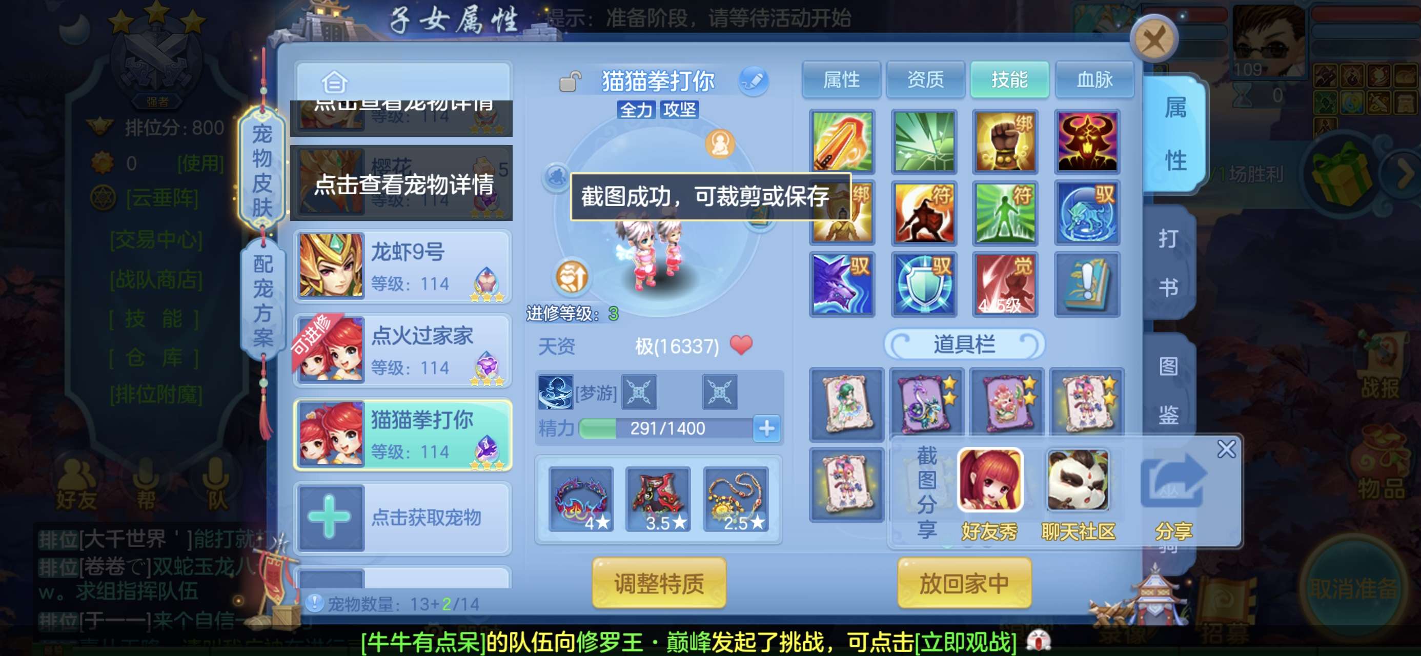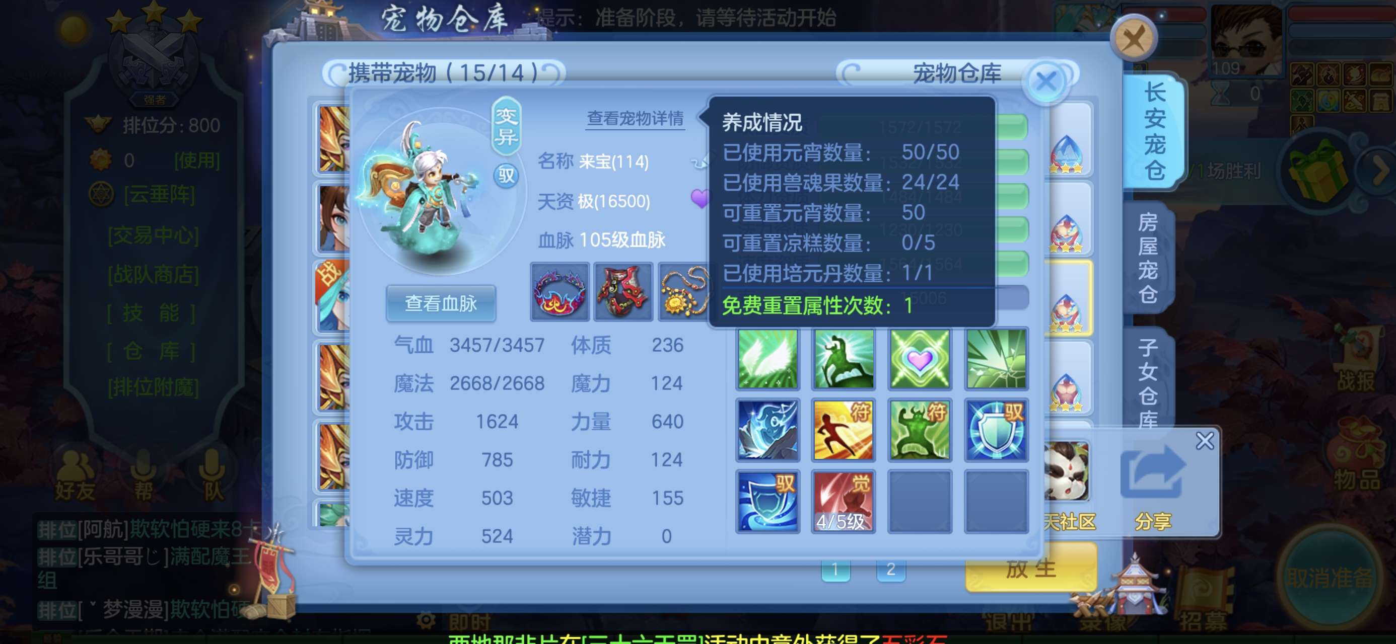 15.5个满兽魂,各种功能宝宝齐全。28个满级宝宝两个法物理孩子