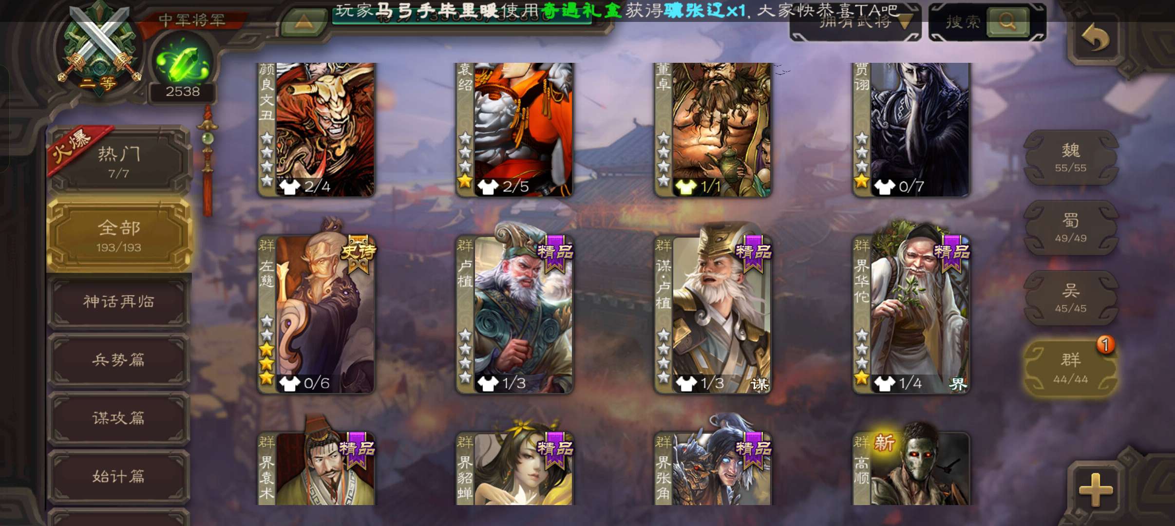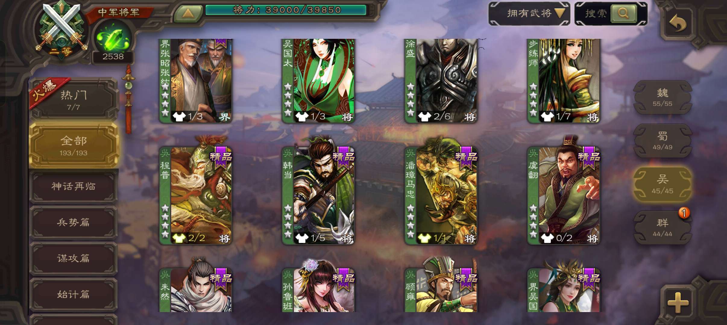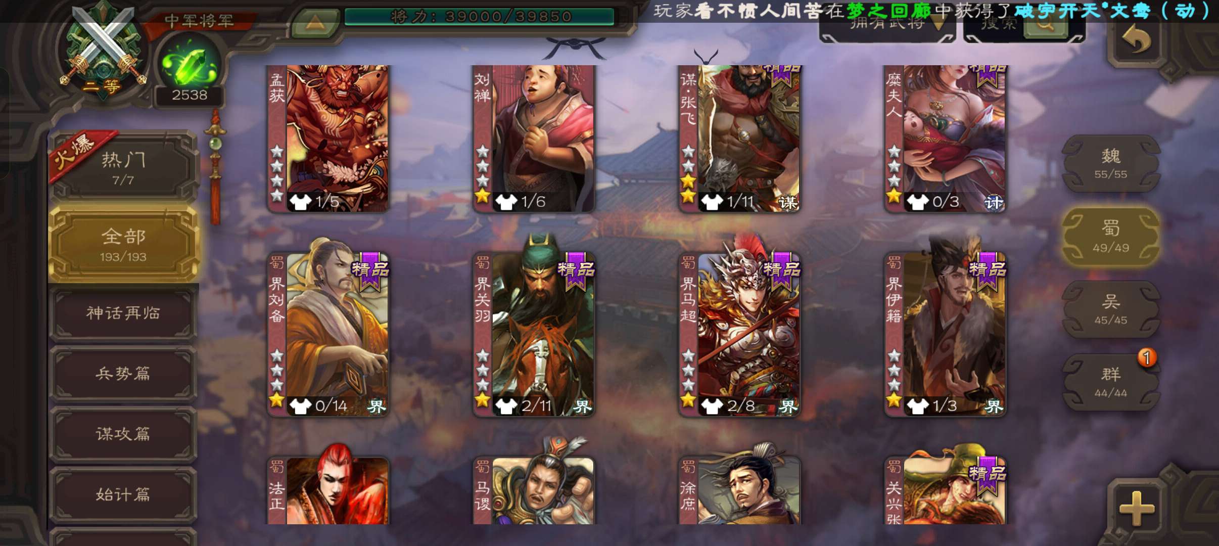 7史诗中军,2500魂,玉龙关索玉龙白马回廊星黄忠星周不疑公孙左慈程昱,谋张飞sp赵云谋卢植193将