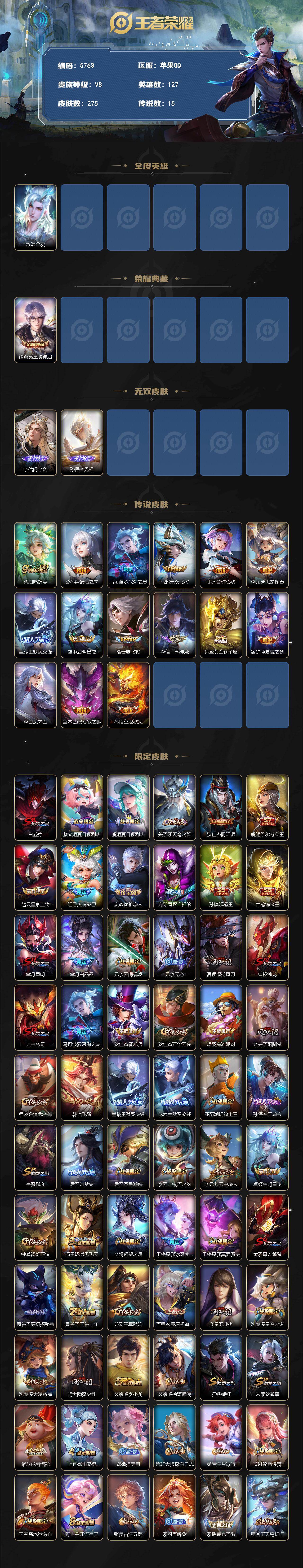 贵族8-275皮1典藏15传说2无双 苹果手Q124区275皮1典藏15传说2无双V8