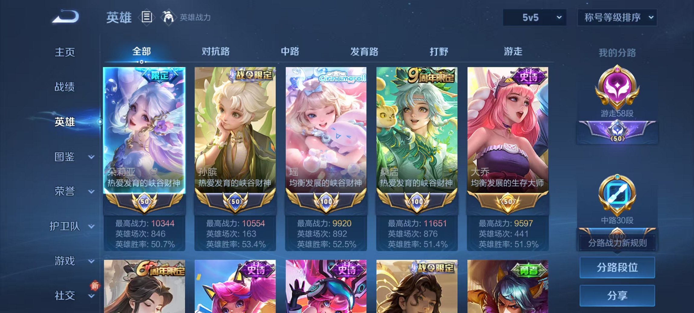 可二次【极品女号 4国服3金标国服瑶 游走58段 1珍品238皮肤7传说2星元