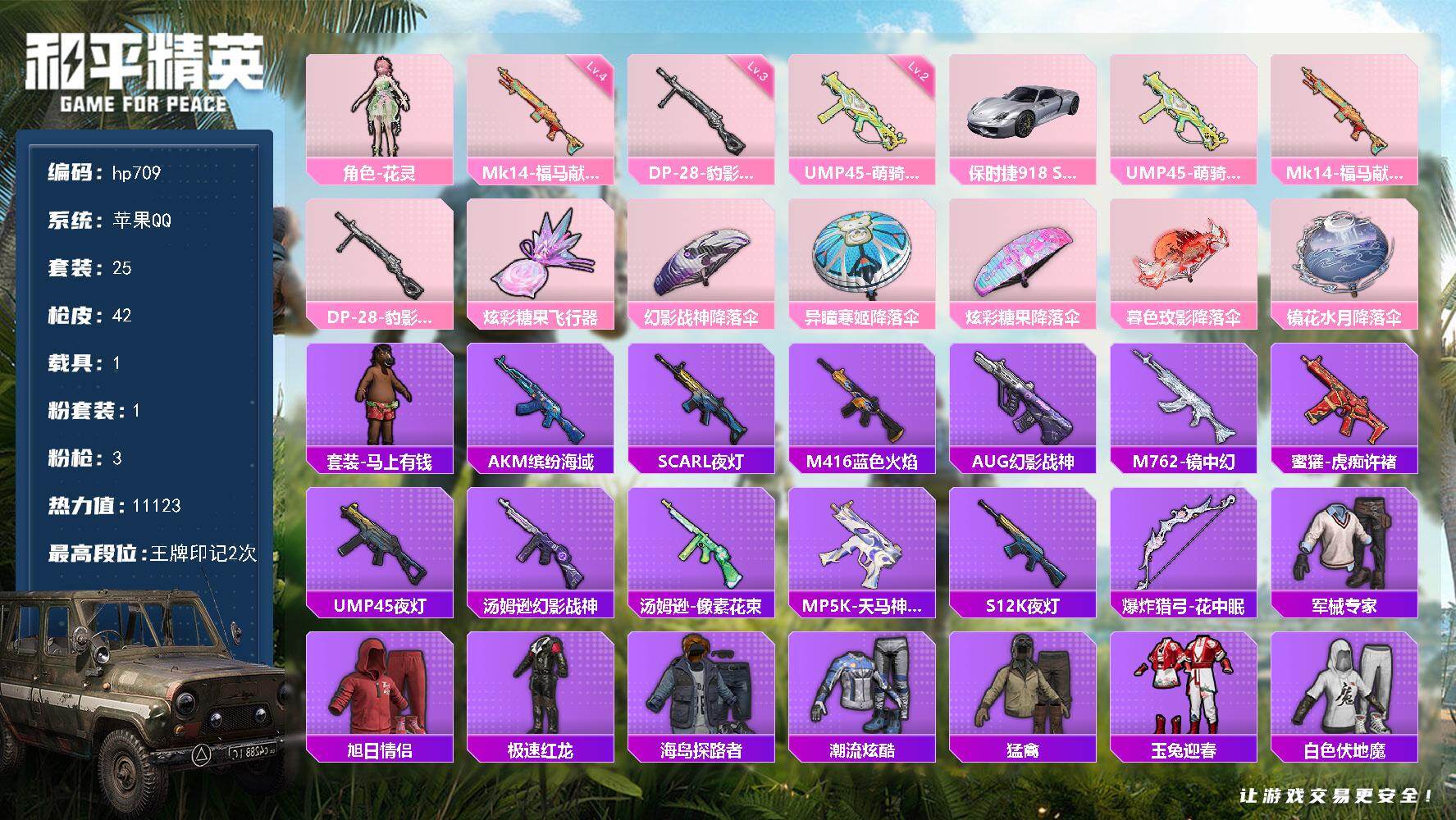 苹果 手Q-1粉装-3特效枪-1载具-1粉色飞行器-1112