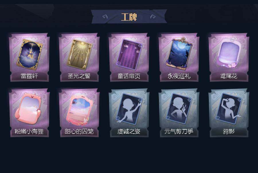 巫铃儿-镜生遗梦,薇薇安-圣光之谕,小黄-遗失的童话,巫铃儿-镜花辞,逍遥-莲华渡,零-渡鸦公爵,艾伦-水王子,艾伦-黎明猎手,莉莉-情公主,莉莉-莓果陷阱,薇薇安-白光莹,逍遥-泽引山海,逍遥-绣春逍影,阿念-王子与骑士,阿念-迷途僵宝,阿念-庆宴绮愿,零-青云逸歌,零-搬开山,爱丽丝-丝缕哀歌,小黄-呱呱雨衣,喷气背包-晶澜灵翼,刺刀-小鲨匕首,刺刀-碧络琅环,桃木剑-最后的独角兽,桃木剑-绯色遗证,长鞭-小狗蛇点点鞭,长鞭-缚誓之锁,传送按钮-幻宠之门,传送按钮-昆仑镜,传送按钮-逆时审判