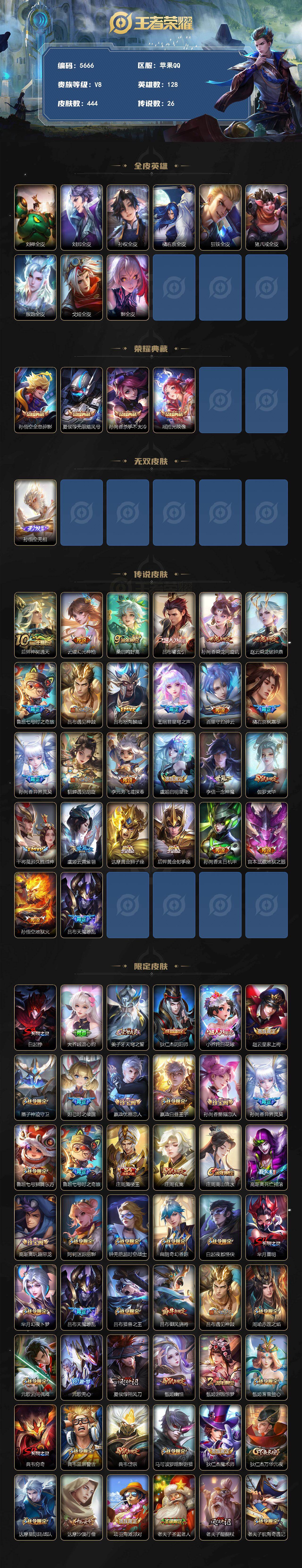皇冠号 金标吕布 贵族9-444皮4典藏26传说1无双-10个英雄全皮 苹果手Q146区444皮4典藏26传说1无双V8