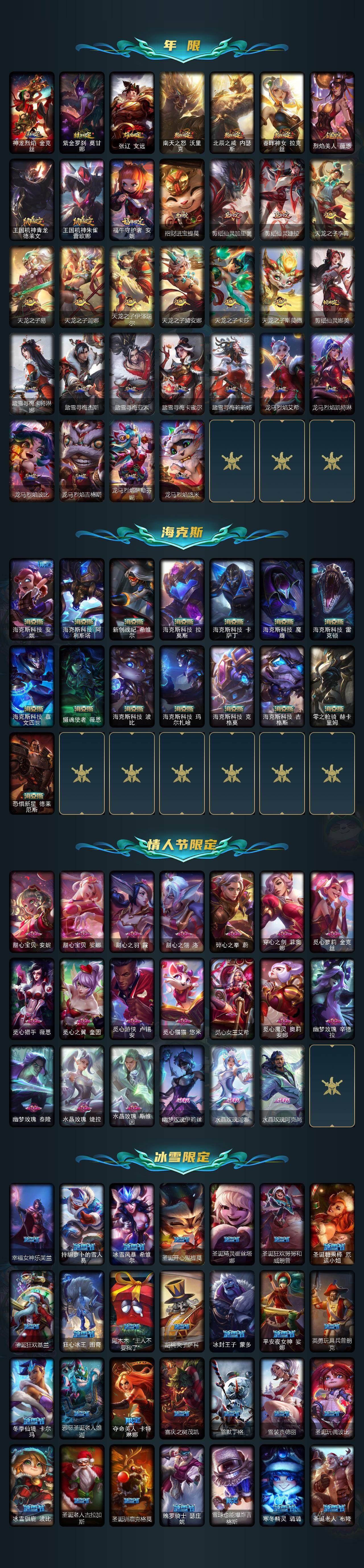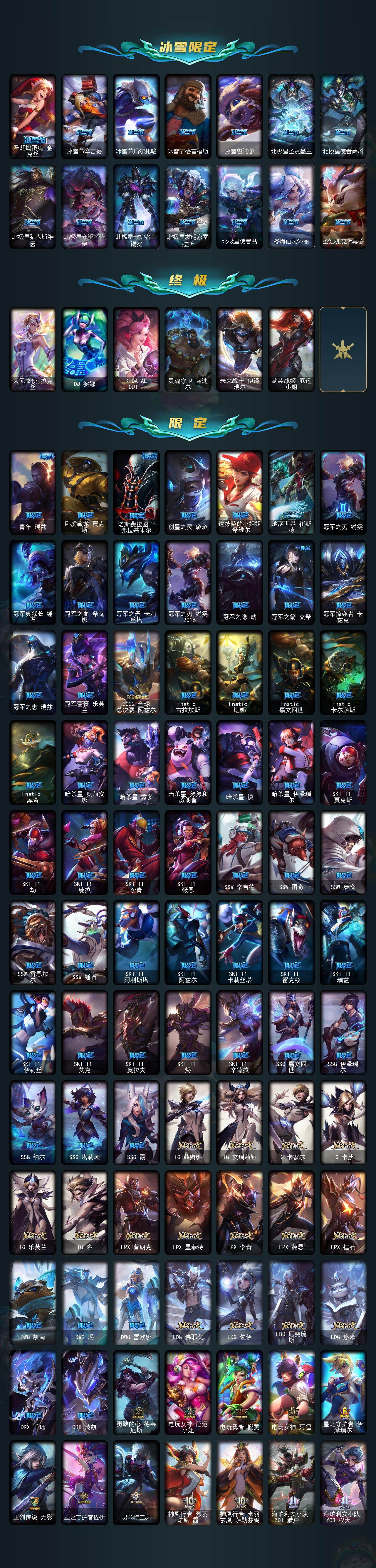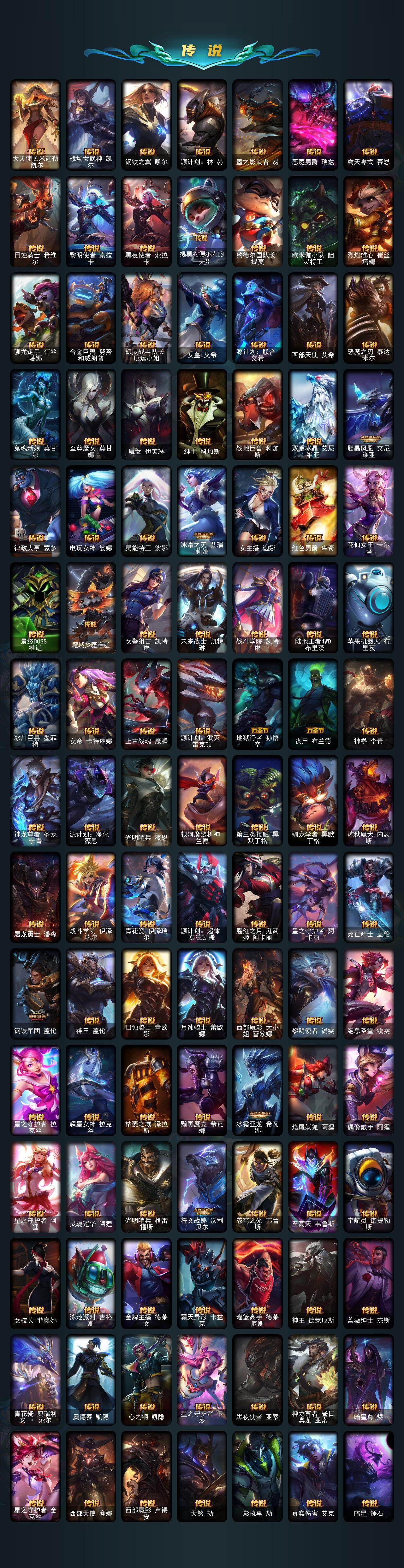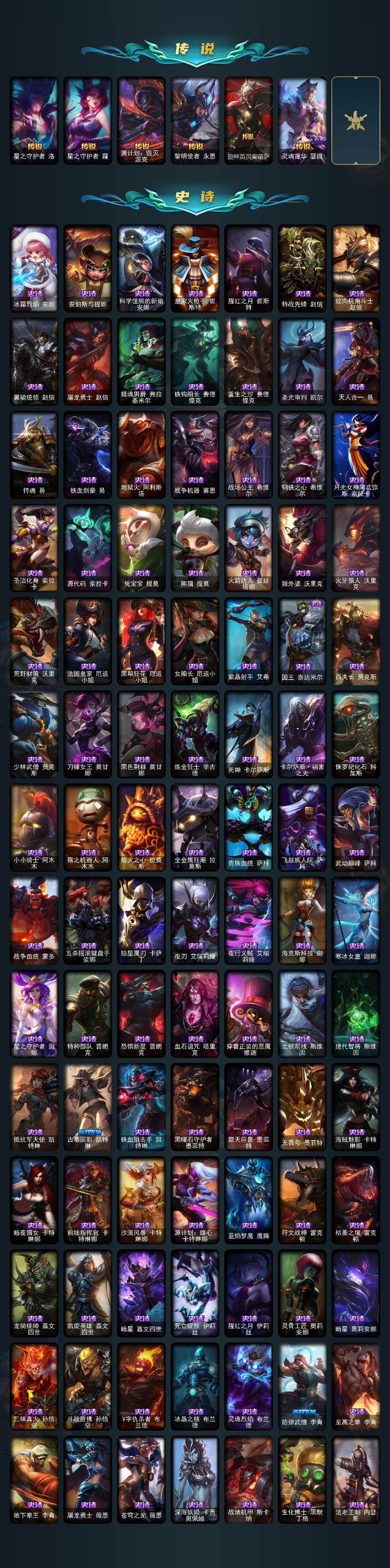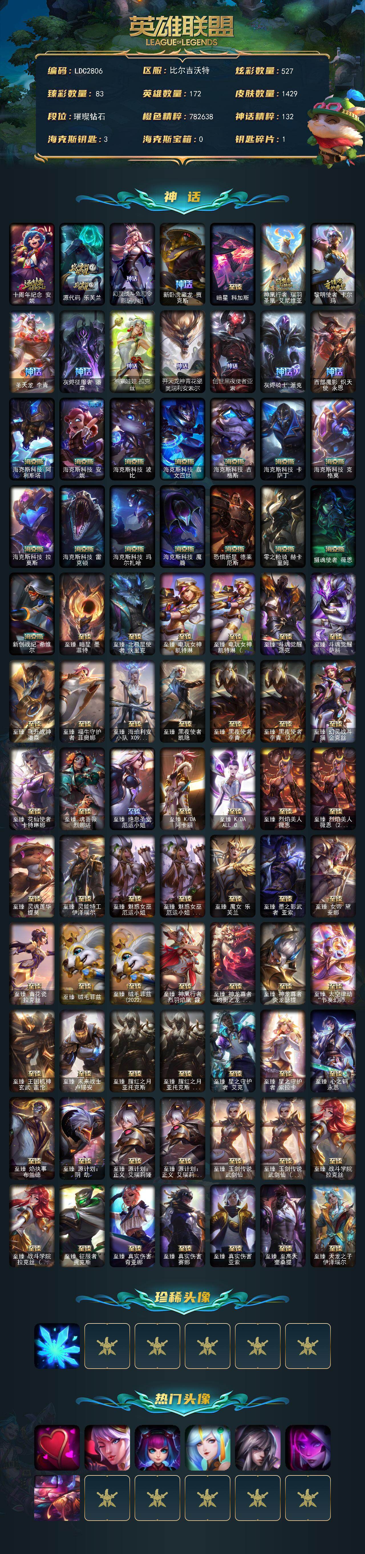 172英雄/1429皮肤/8终极/92神话/282限定/83臻彩/