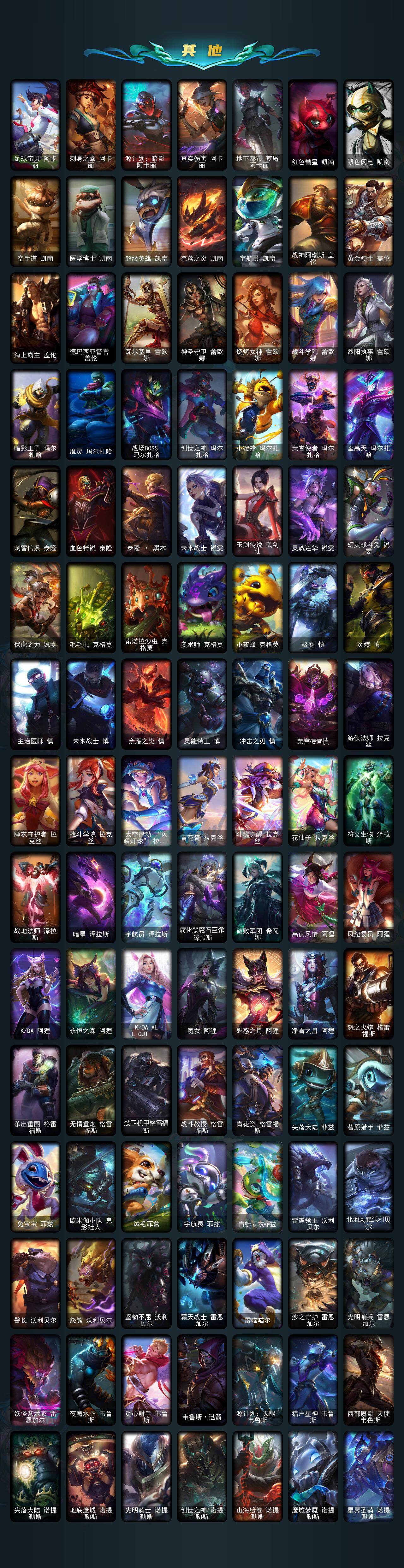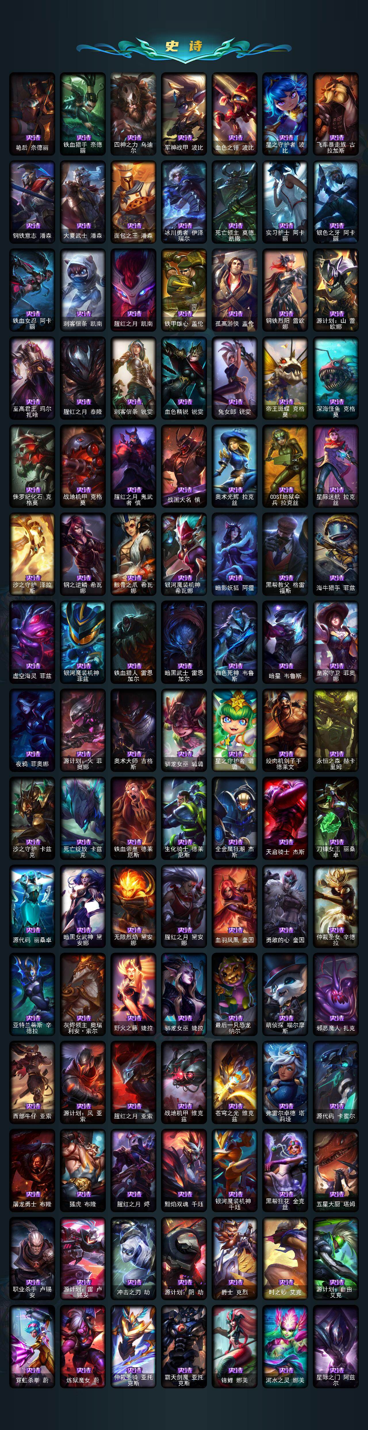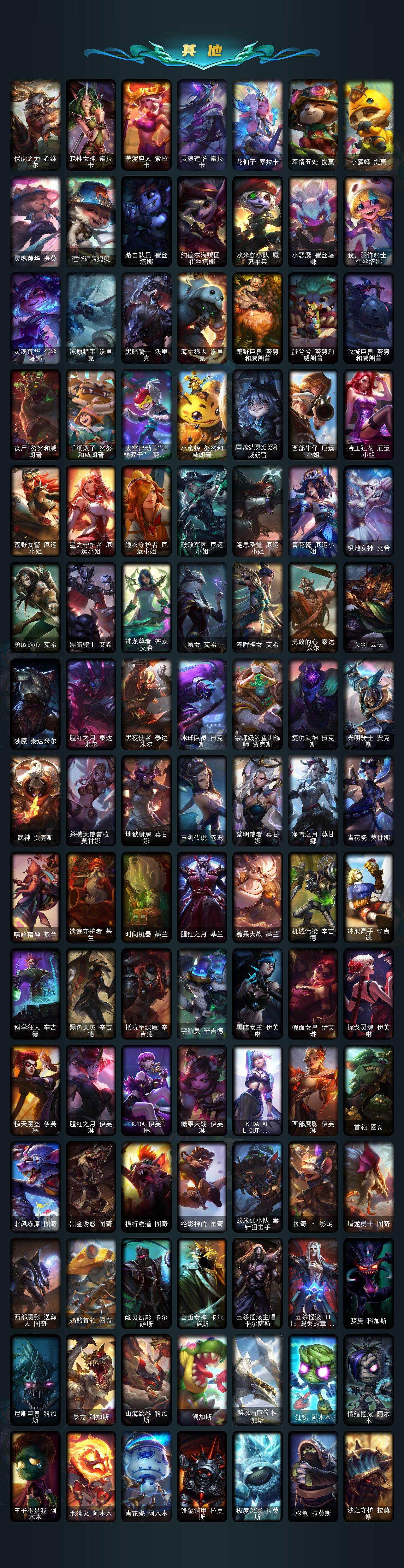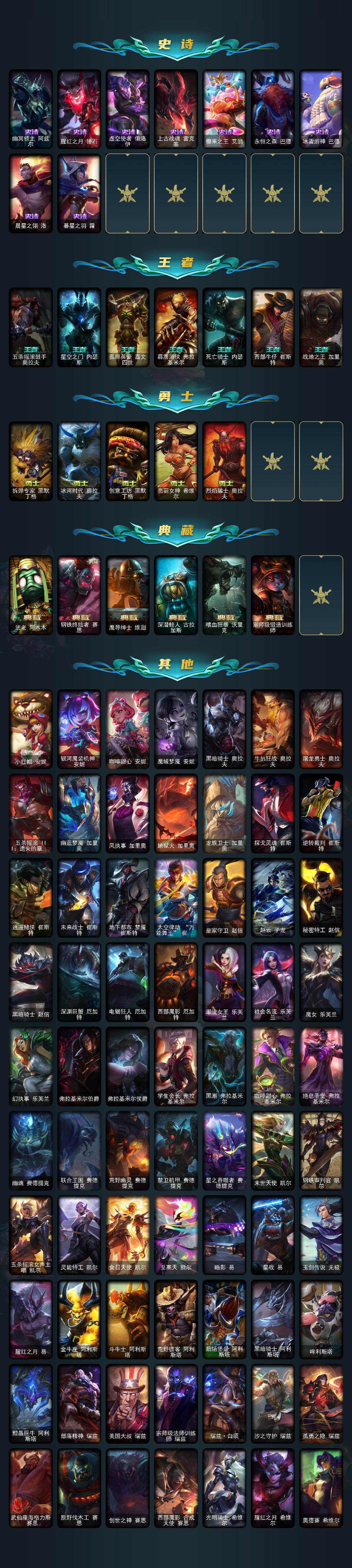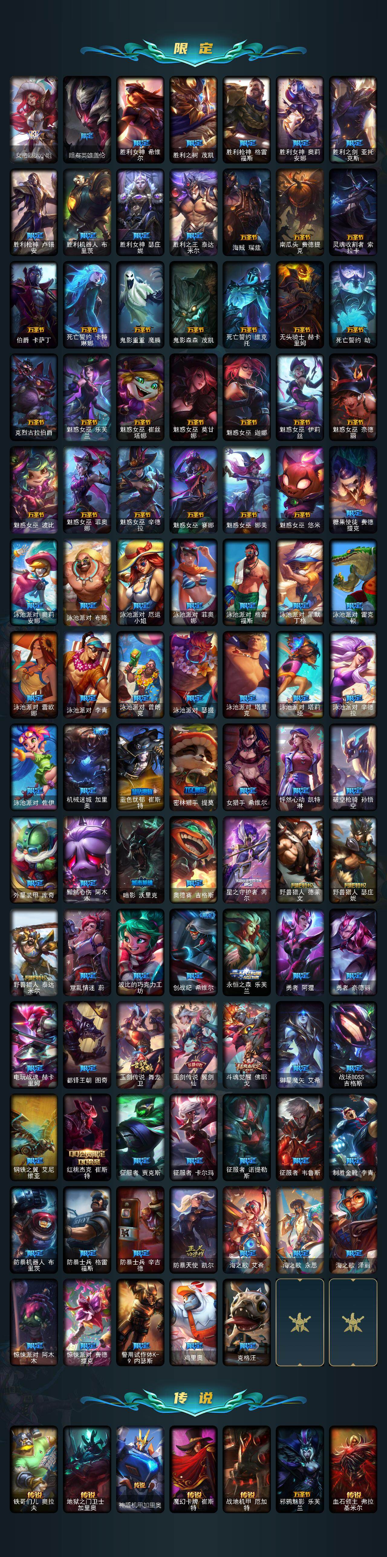 172英雄/1429皮肤/8终极/92神话/282限定/83臻彩/