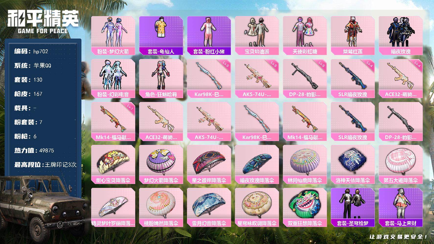 苹果 手Q-7粉装-6特效枪-0载具-0粉色飞行器-4987