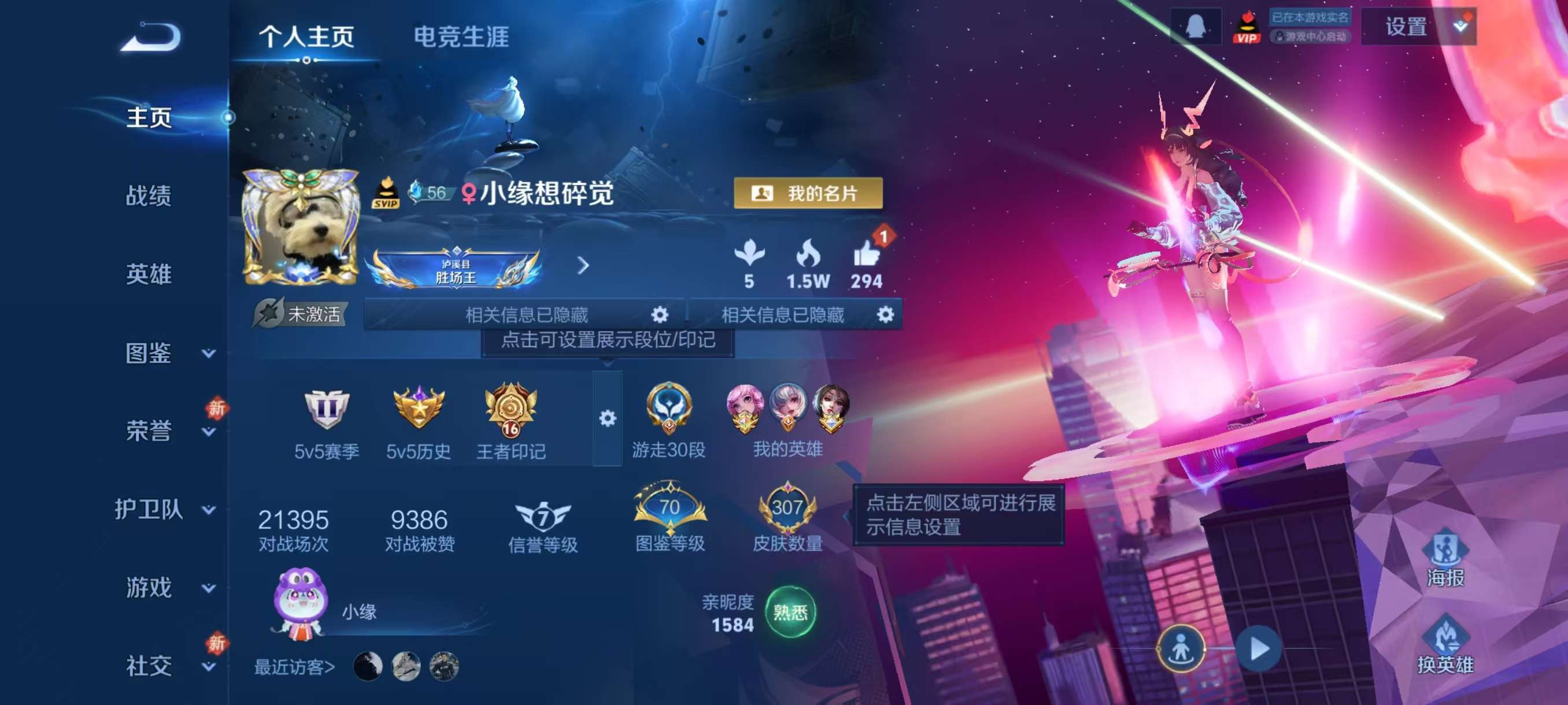 安卓QQ/永恒钻石/308皮肤/126英雄/2典藏/0珍品无双/1无双/0珍品传说/11传说/83史