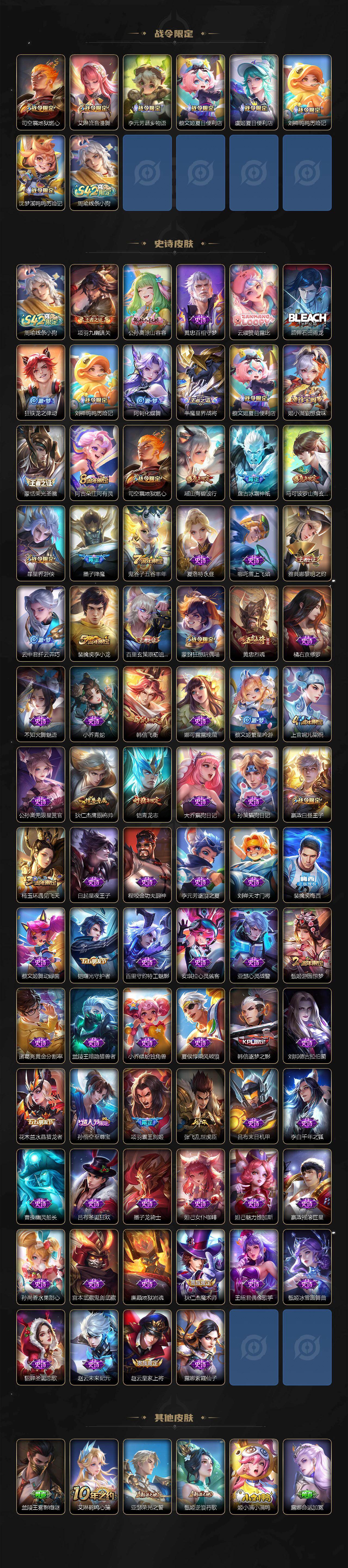 V7-最强王者段位-128英雄-301皮肤-3典藏皮肤-31传说-81史诗
