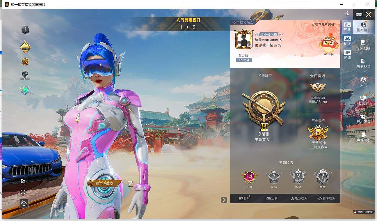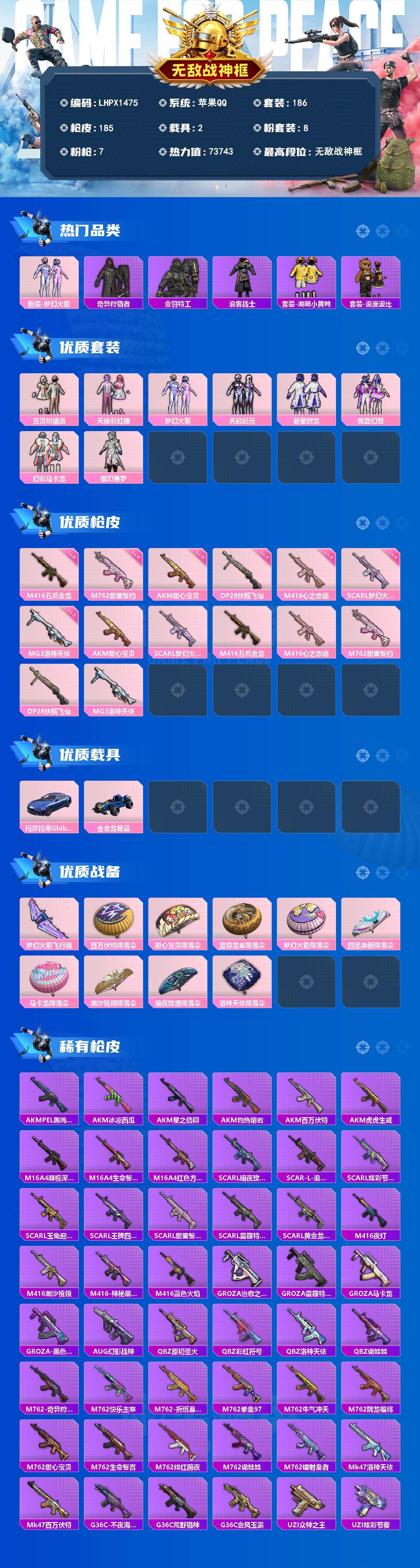 4个战神框/ 苹果 手Q-无敌战神框-8粉装-7特效枪-2载具-1粉色飞行器-73743热力值-14王牌印记-186套装-185枪皮