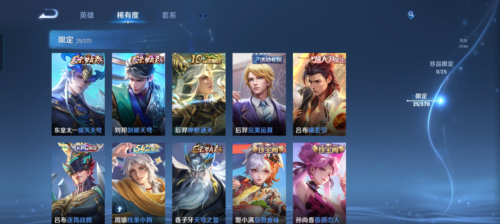 V4 皮肤109 英雄120 永恒钻石 传说7 其他皮肤109