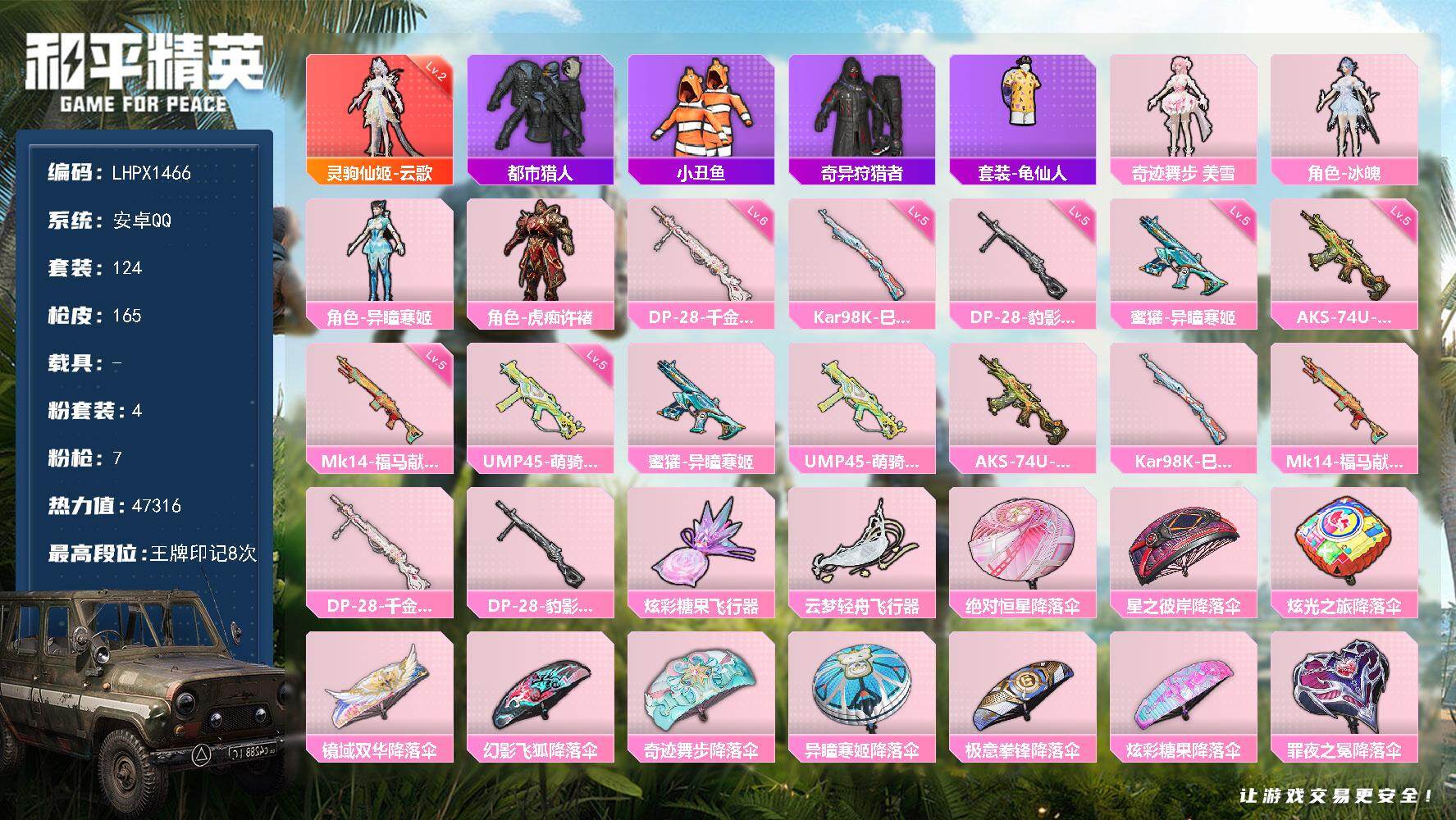 安卓 手Q-1神装-4粉装-7特效枪-