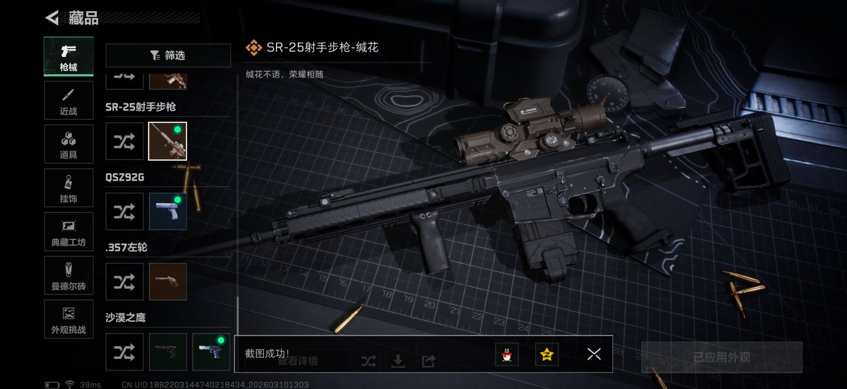 【传说外观】:QBZ95-1突击步枪-凌霄戍卫,M14射手步枪-缄花,SR-25射手步枪-缄花,.357左轮-缄花