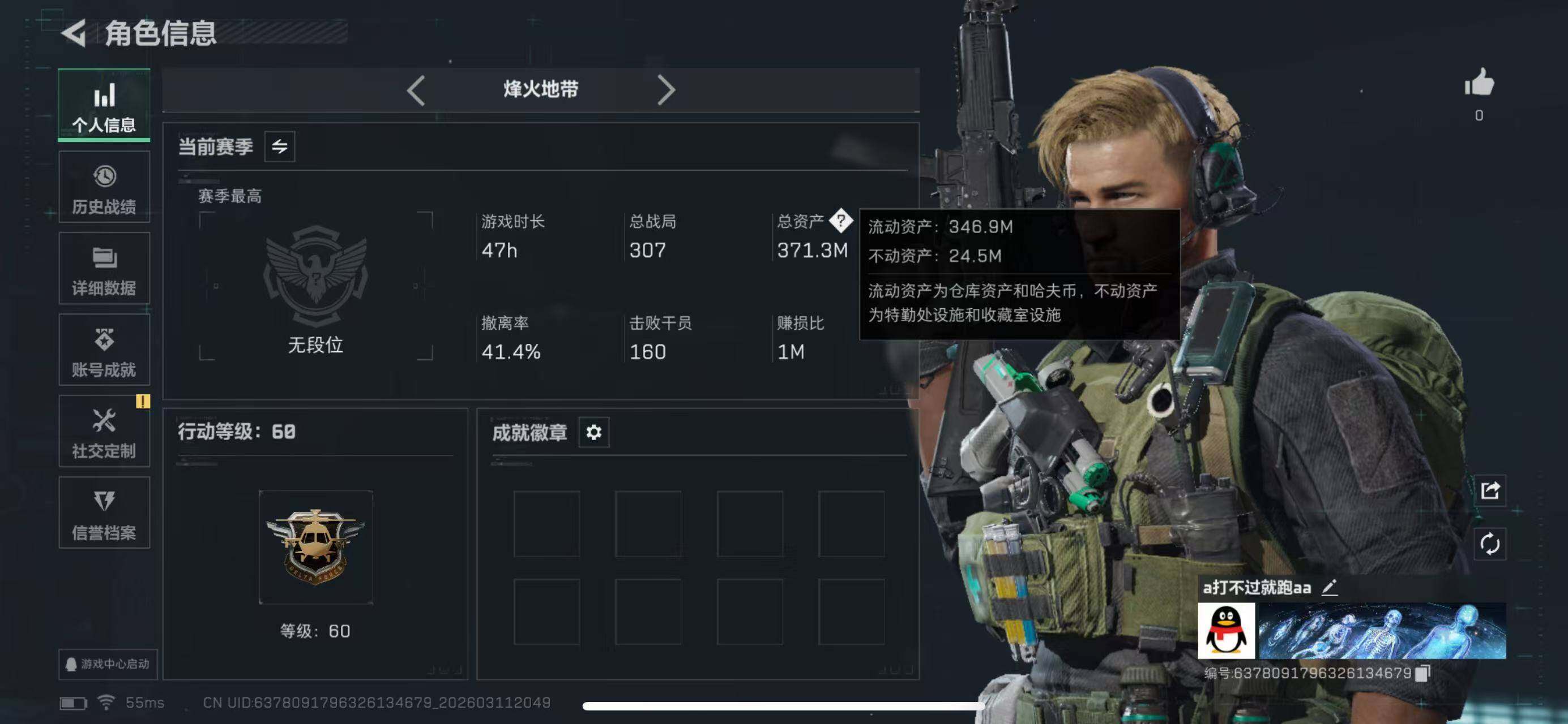 【SJ1346】【无封禁 满体满负】行动等级:60 总资产:371M 哈夫币: