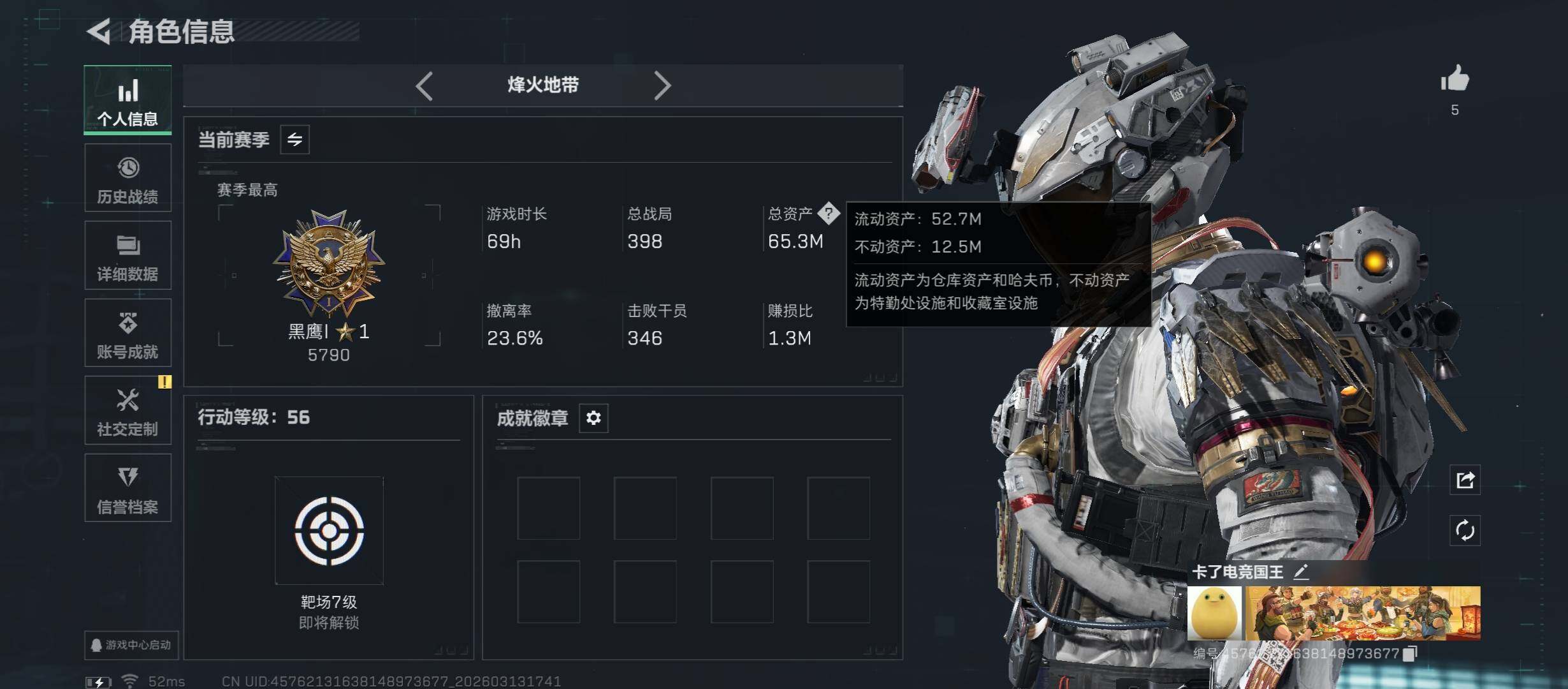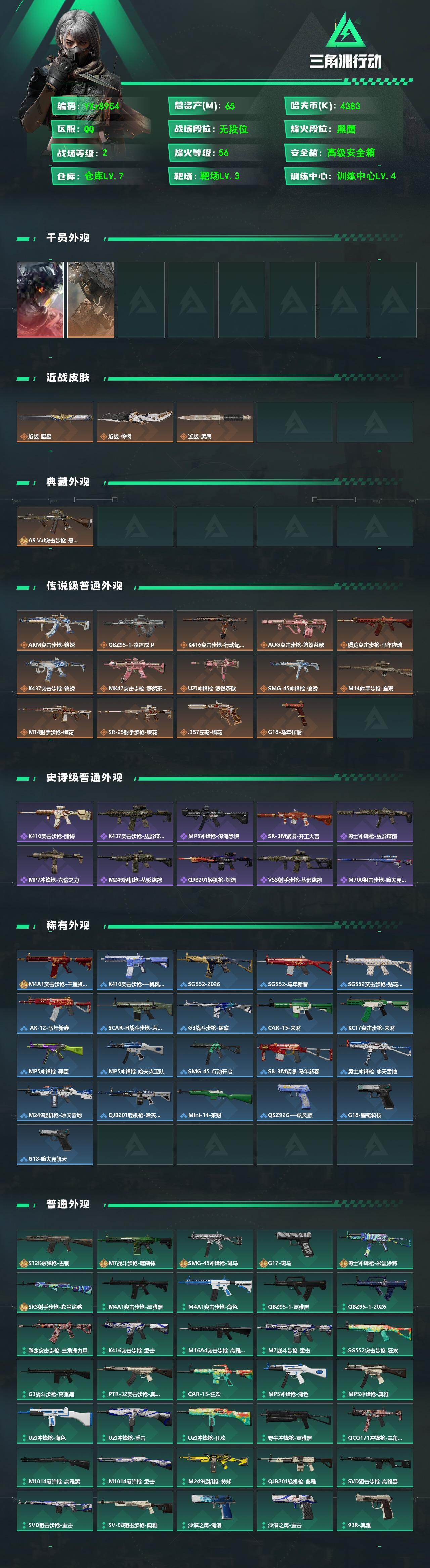 【Q区三端互通】【无二次】YXz8954-特勤处:仓库7级/靶场3级/训练中心4级-总资产65m-哈夫币438w-烽火等级:60级