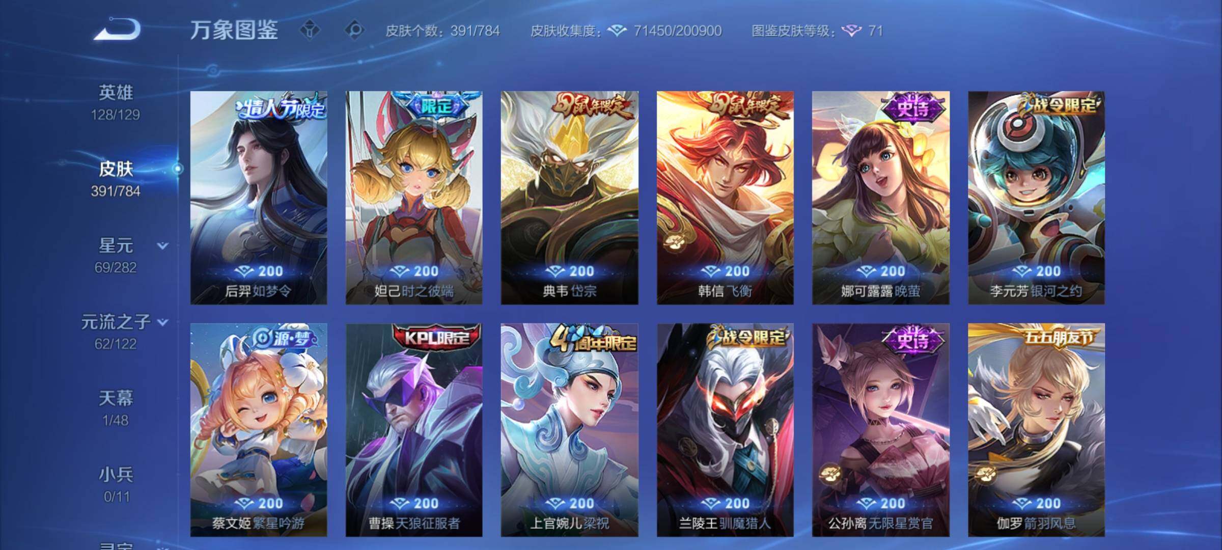 可换绑【V9精品号·贵族积分16.2万·曜全皮·孙悟空曜2无双·3典藏·伽罗珍